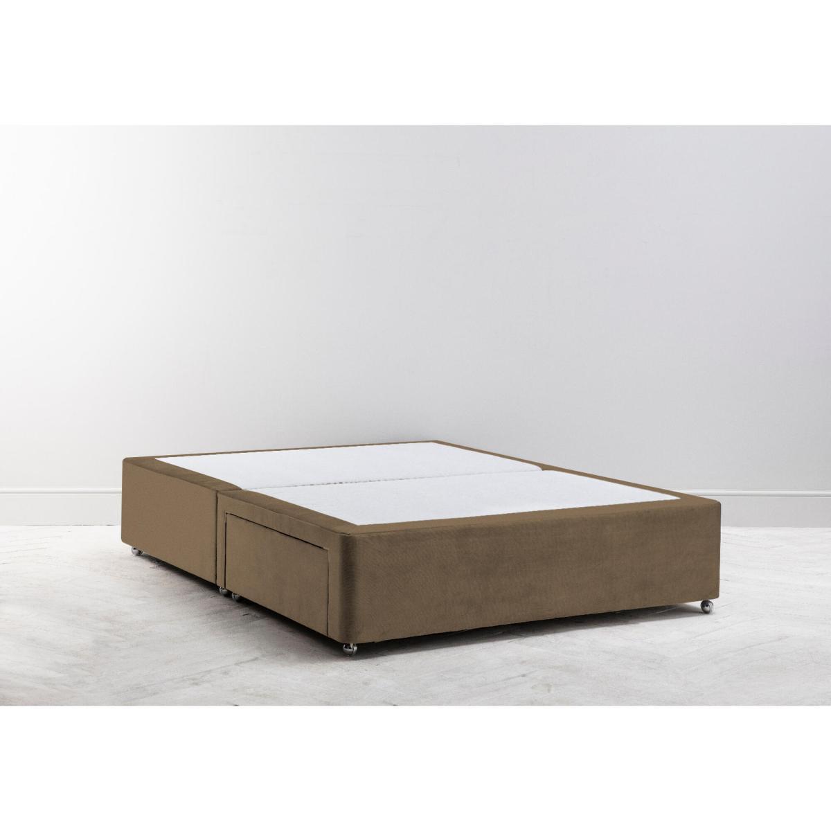 Give your body a heavenly rest every night with the support of our Cook made to order divan. This upholstered super king size divan has a solid hardwood frame, two sliding drawers for added storage and sturdy metal castors. Available in over a hundred different upholsteries to choose from, each Cook is made to order by hand exclusively for you, and as such, will give a personal, designed look to your bedroom. Give your body a heavenly rest every night with the support of our Cook made to order divan. This upholstered super king size divan has a solid hardwood frame, two sliding drawers for added storage and sturdy metal castors. Available in over a hundred different upholsteries to choose from, each Cook is made to order by hand exclusively for you, and as such, will give a personal, designed look to your bedroom.