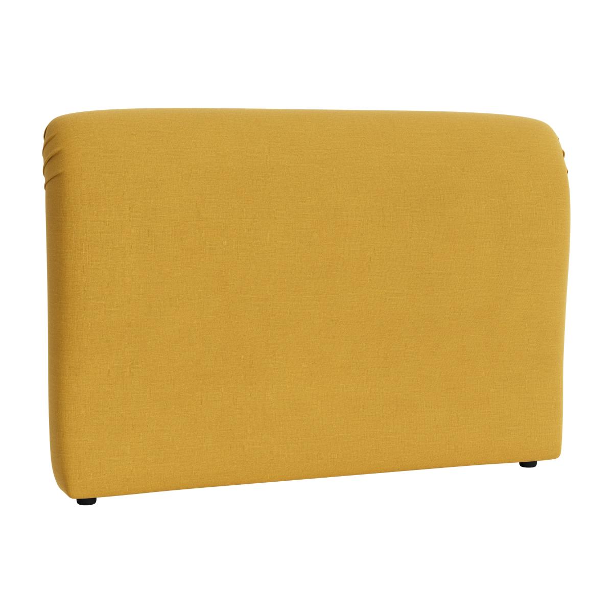 I love this headboard for adding a bold, playful statement to a bedroom. Its bright yellow hue makes it ideal for contemporary schemes or eclectic interiors where a pop of colour is needed. It works well in spaces with mid-century modern influences or a more relaxed, casual vibe. Practical styling tips include pairing it with crisp, neutral bedding to keep the look fresh or layering with textured throws and cushions for added visual interest. Its simple, rounded shape means it balances well with both soft fabrics and more modern, structured furniture, making it a versatile choice for creating a cosy yet stylish sleeping space.