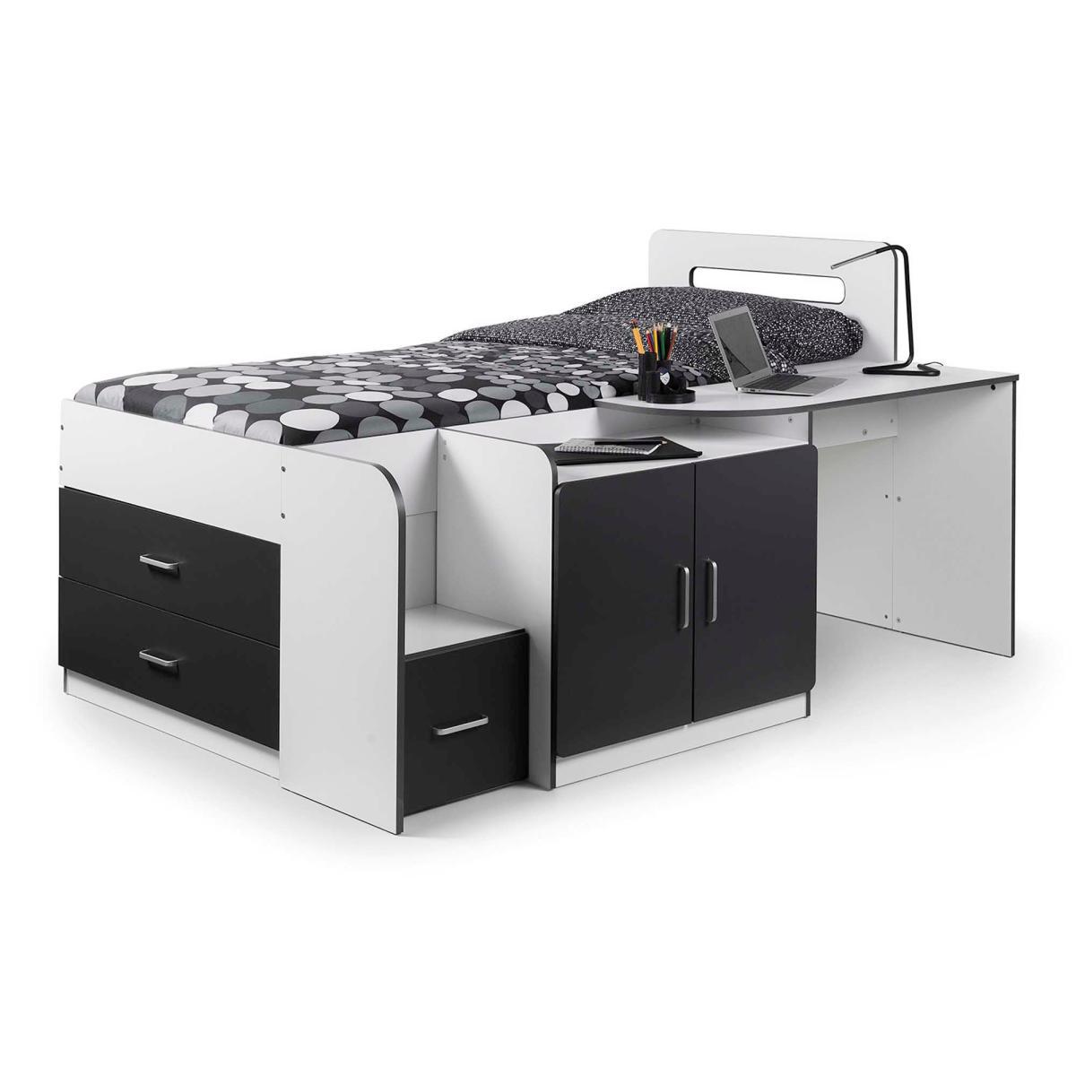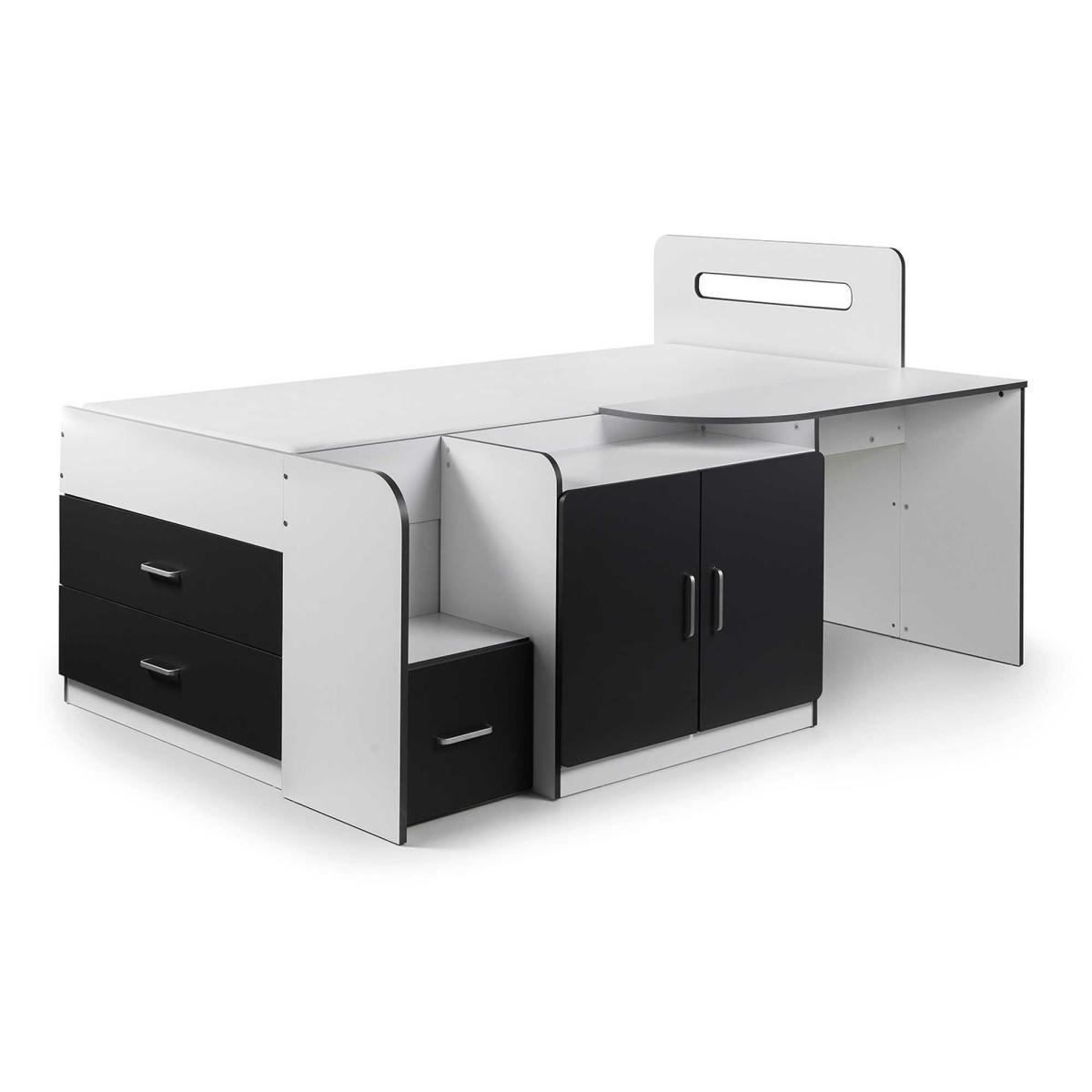 An innovative and highly functional cabin bed, the Cookie Cabin Bed offers incredible versatility with three storage drawers, a cupboard, a shelf and a desk, all neatly integrated into a sleek, contemporary design. Please note, unfortunately we cannot deliver this item to the Channel Islands.