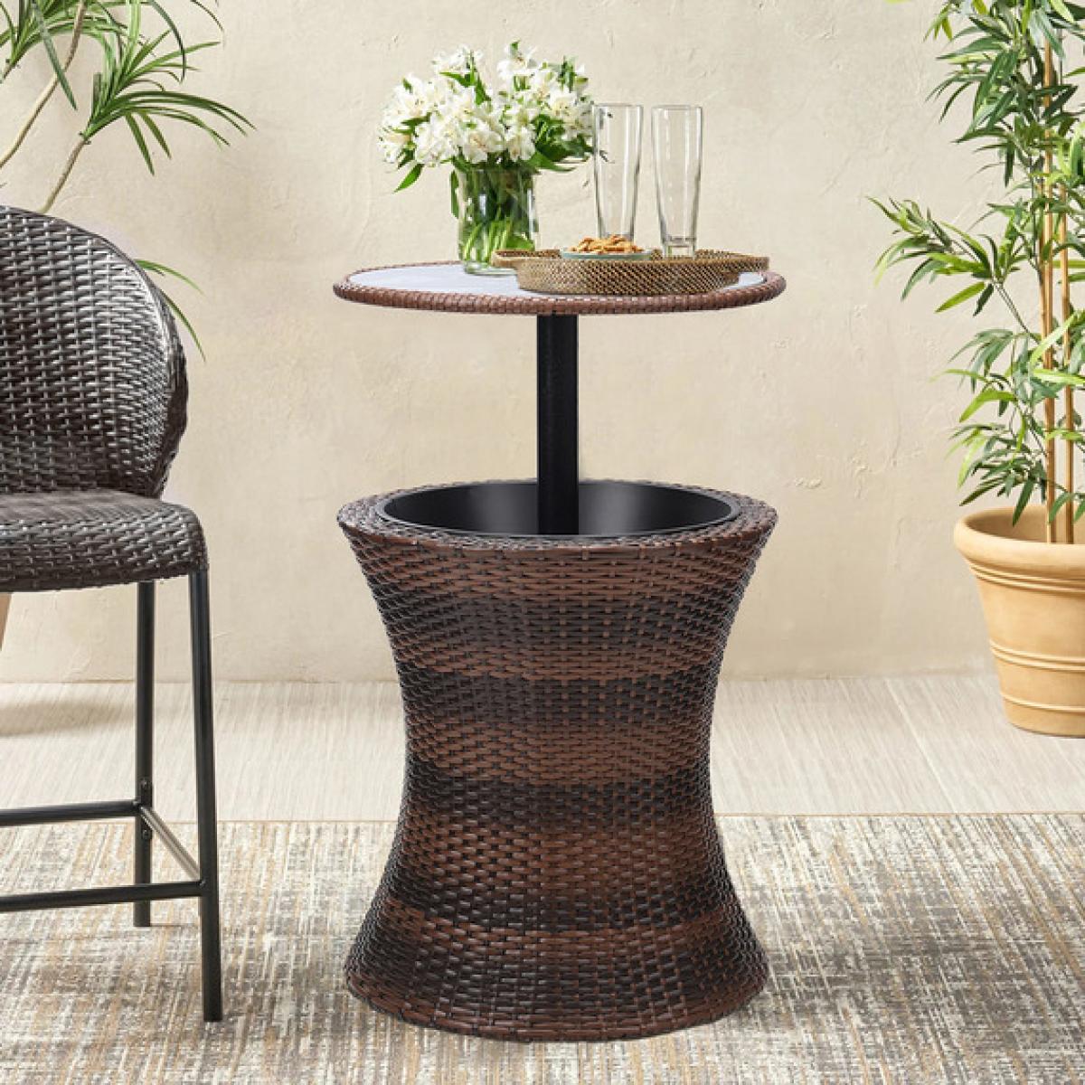 I love this outdoor bar table for its sleek black finish and versatile design, making it an excellent centrepiece for garden patios or al fresco dining areas. Its contemporary look works particularly well in modern or minimalist exteriors, but it can also add a striking contrast in more traditional garden setups. Styling tips include pairing it with rattan or wicker chairs for a relaxed vibe, or adding colourful cushions and lanterns to create inviting outdoor living spaces. Its practicality is boosted by its sturdy construction and lightweight design - making it easy to move and arrange as needed. Overall, it’s a smart addition for anyone wanting a functional yet stylish garden table to entertain friends or enjoy casual drinks outside.