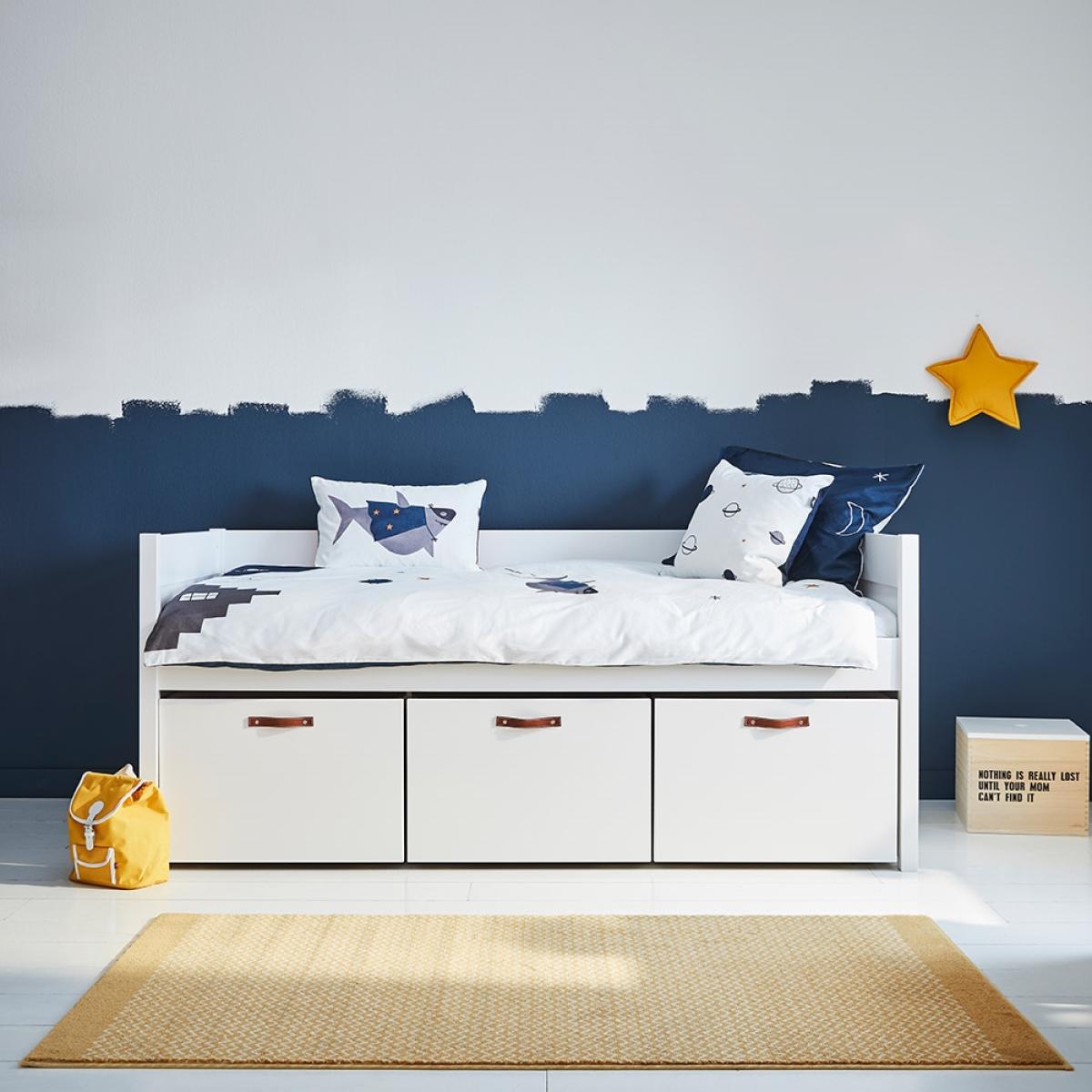 Short on floor space in the kids rooms? You've run out of places for all of their essentials? Need help? Don't you worry. The Cool Kids Cabin Bed is the one for your youngster! Designed with 48cm from bed to floor, there is more than enough room! That's864. L to be exact. That's a whole lot of storage to play with. With the option to add the 3 matching drawers with stylish leather handle details, keep their bedding, toys and shoes contained and tidied away. Designed for kids of all ages, add the bed guard and step and customise their setup any way you like. Made from solid wood with a bright white finish, complete the look with bedding, accessories and decor in any colour they fancy!.