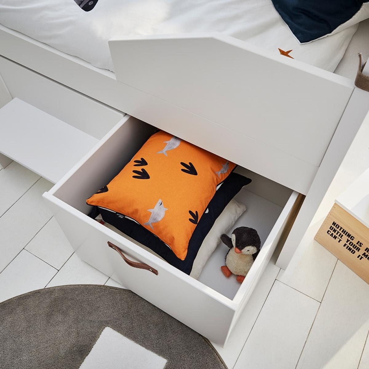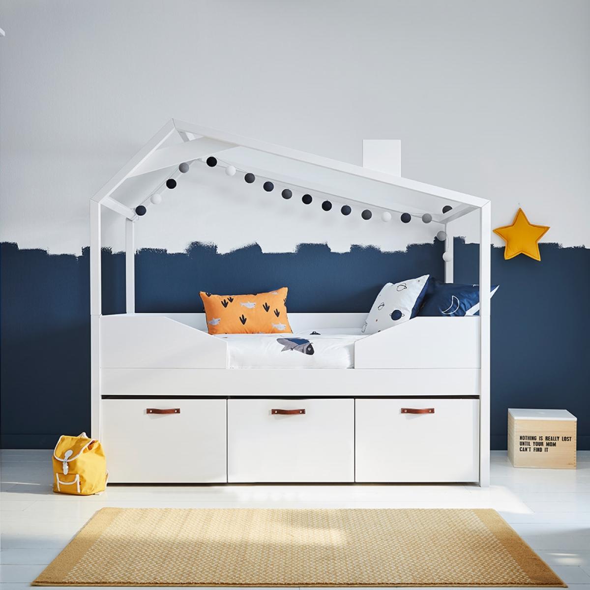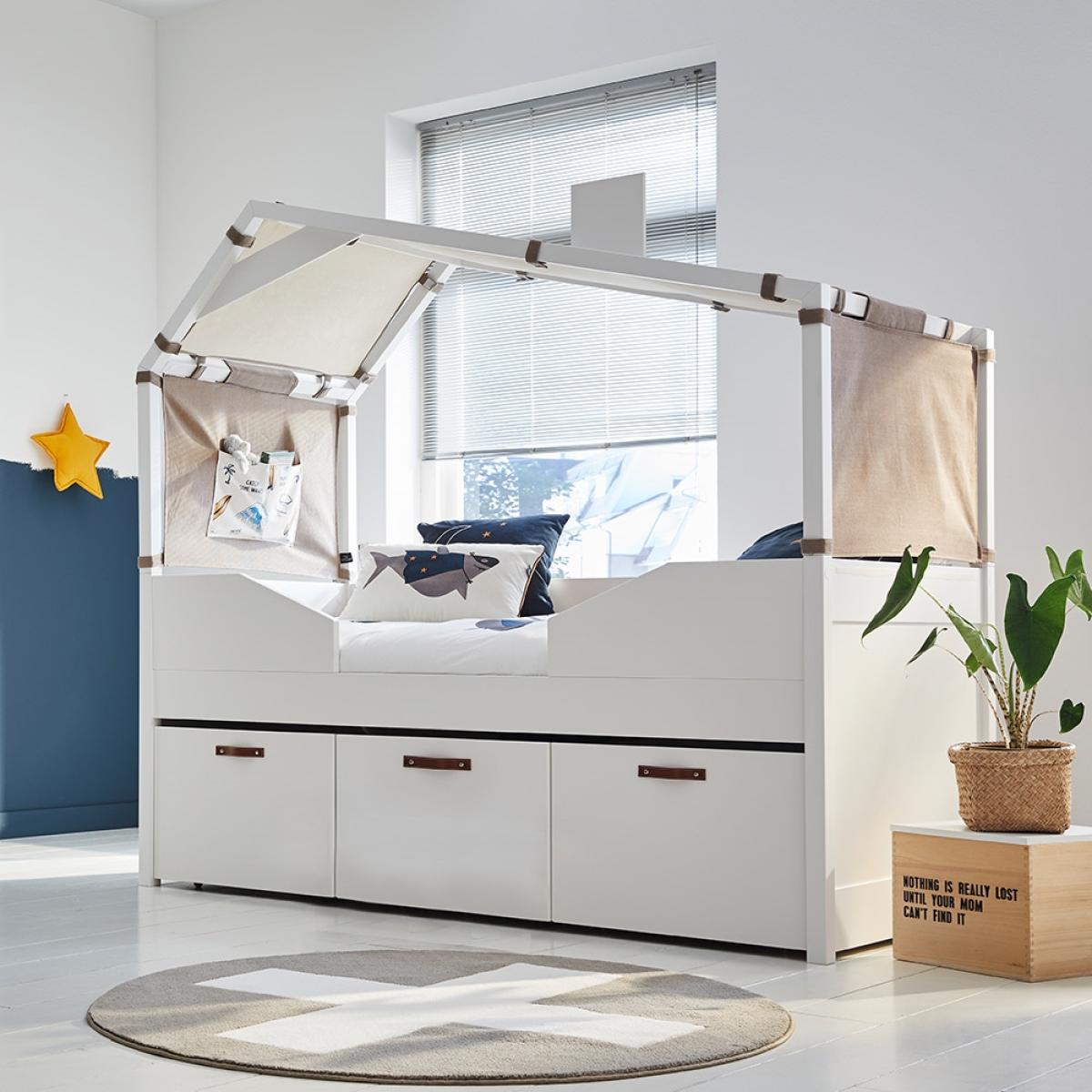 Bedtime just got a lot more interesting with the Cool Kids Hut Cabin Bed! Featuring a brilliant house-style roof, we're certain your kiddies will be itching to get ready for bed and snuggle up under the canopy! In a gorgeous surf design, take this house bed to another level of cosy. Including storage pockets for books, bedtime stories are never too far away. As the bed frame is high off the ground, there's plenty of storage space for bedding, toys, games and shoes, keep it all hidden away and off the floor with the handy storage drawers. Designed for all ages, with the added bed guards will keep your kiddies safe. Plus, the roof can be removed when they've gotten too big for their house bed! Completely customisable, this cabin bed has it all!.