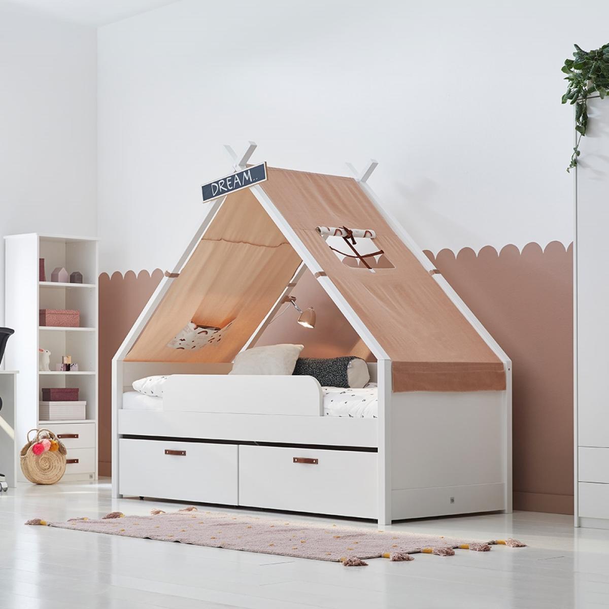 The Cool Kids Tipi Day Bed is the perfect spot for your little explorer to rest and relax! Featuring a teepee style roof, they won't be able to resist this charming bed. Including a chalkboard name plate, your kiddies will love practicing writing their name or you could leave them little messages to wake up to! With a choice of themed canopy designs, customise the bed frame to suit your youngster. Including a fabric pocket, they can keep their favourite bedtime stories closeby and with a roll-down window they'll love playing peek-a-boo before they hit the hay. With plenty of storage space below the bed, add the matching drawers with leather handle details and store bedding, toys and shoes neatly away. No doubt your dinky adventurer will hide all sorts of treasures inside their new bed! With matching storage available from Cool Kids, make sure your kiddies have plenty of space for all of their bits and bobs!.