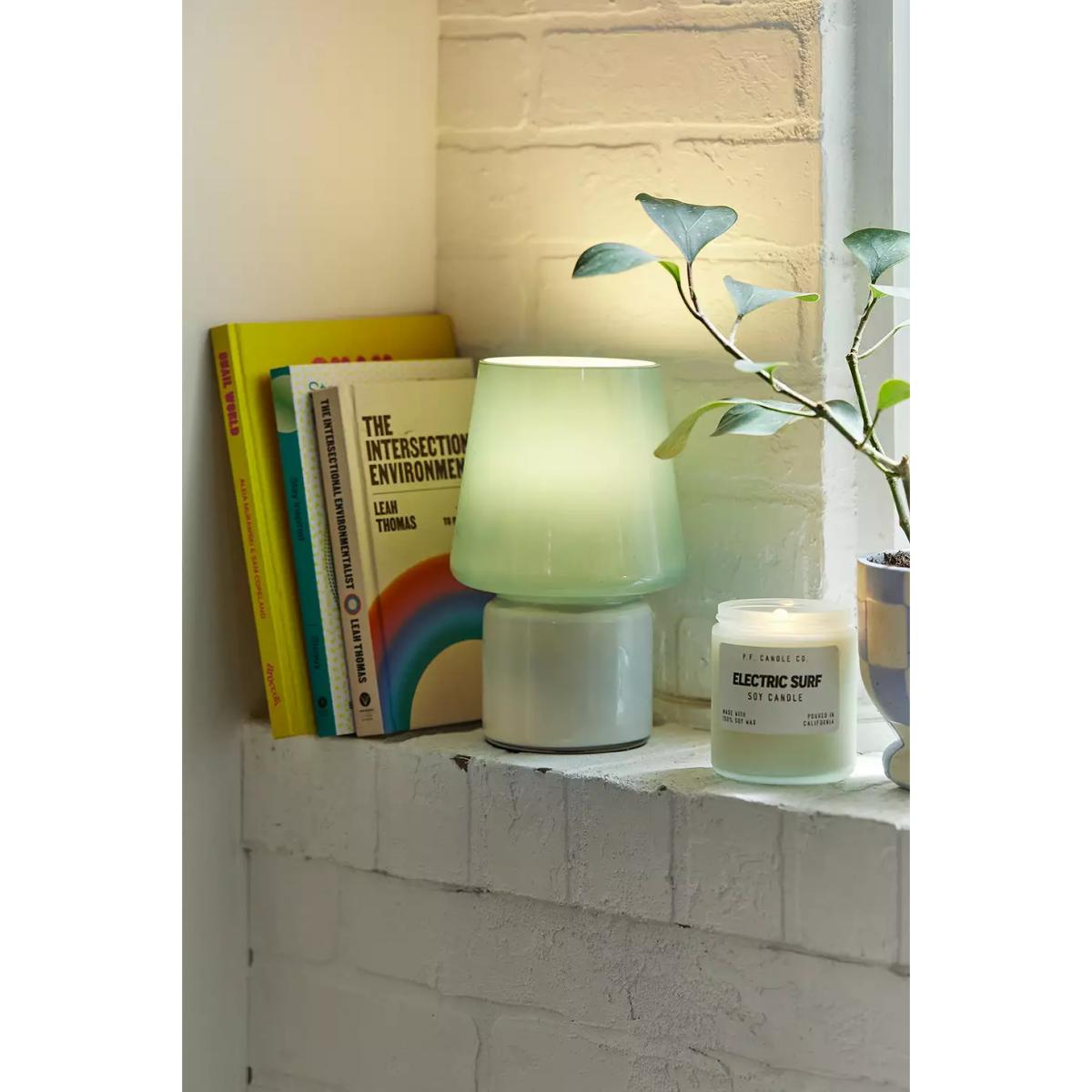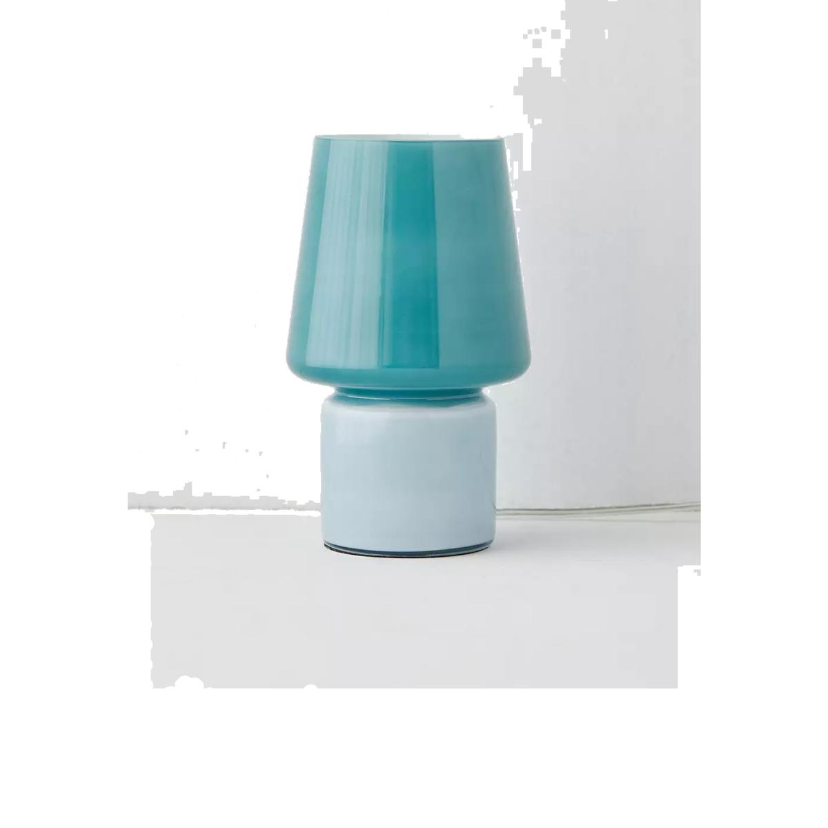 Small table lamp in a translucent glass construction, complete with curved edges and an open-top silhouette. Emits a warm glow when turned on, perfect for adding to your bedside table or bookshelf. **Content + Care** \- Glass \- Wipe clean \- Includes a UK plug \- Requires one E26 25W bulb or 5W LED bulb (not included) **Size** \- Dimensions:Dia: 12.4cm x H: 21cm \- Cord length: 213cm \- Weight: 1.43 lbs