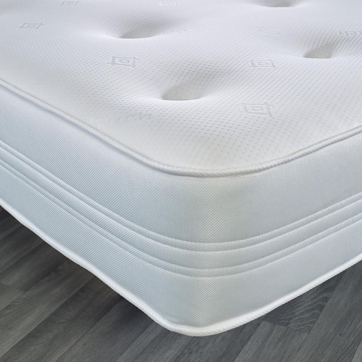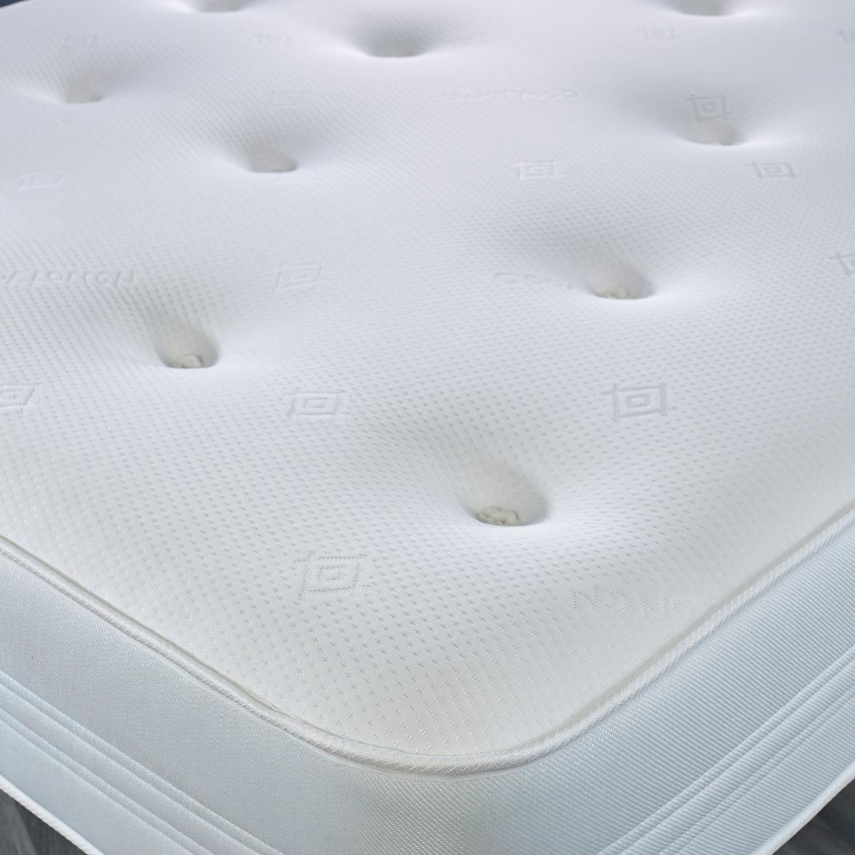 This Memory Foam Sprung cool touch grey tufted mattress has 8 individual comfort layers providing the sleeper with extra comfort and support, carefully hand-tufted tufts keep the layers tightly held together so the sleeper can enjoy an endless night's sleep. With an 8 inches deep base of approximately 23cm, the mattress has a 13.5gauge open coil spring unit, the steel wire provides a firmer and much more supportive feel with less spring feel which distributes the sleeper pressure and weight evenly across the mattress surface for extra comfort and support. The mattress has been carefully designed with a super-soft cooling top cover which is gentle on the sleeper's skin for a cool sleeping sensation. It has a quilted breathable border which allows airflow to pass through the tiny air holes ventilating the mattress keeping it odor-free and maintaining the sleeper at room temperature. Designed single-sided, simply rotate every so often to keep it in pristine condition, with hypoallergenic and anti-dust mite features. Delivered vacuum packed, rolled, and boxed for the convenience of the customer making it a much more environmentally friendly way.