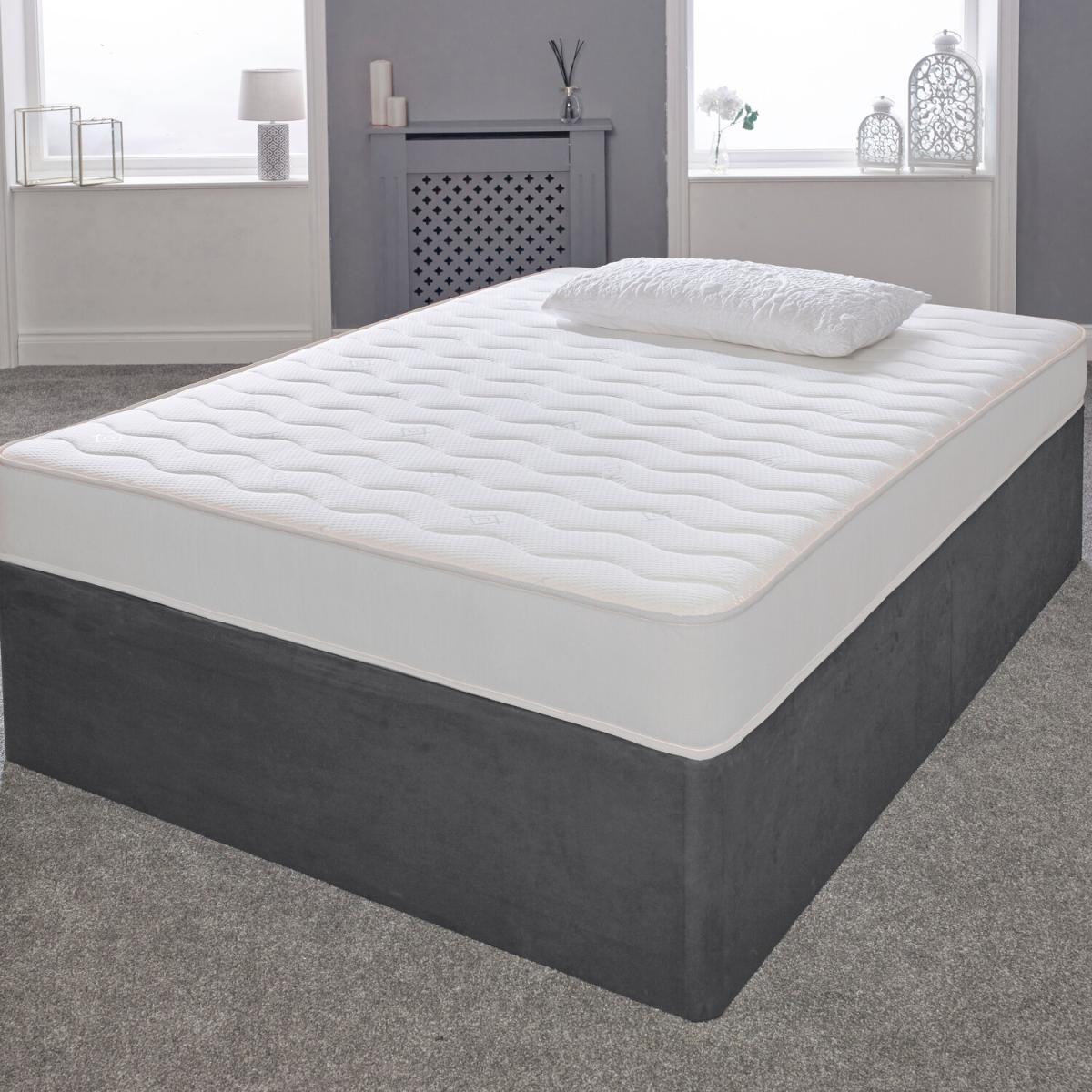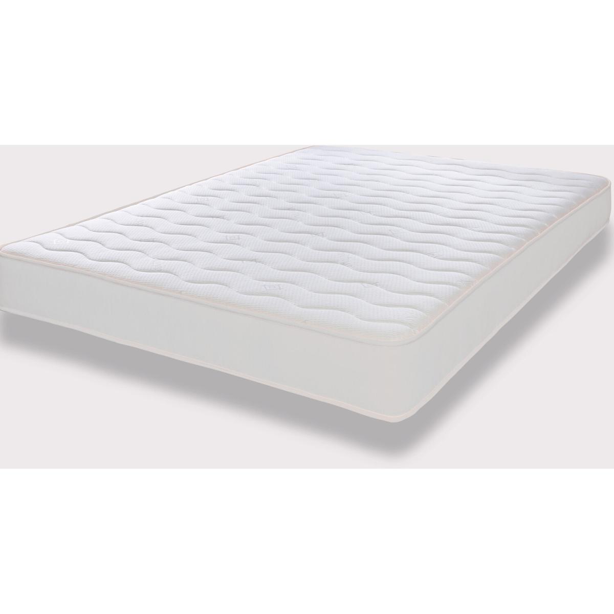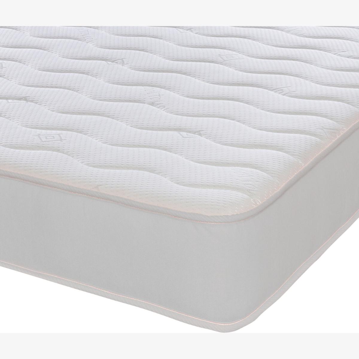 Great for bunk beds, cabin beds, day beds etc. Please do check the size of your base before ordering as these will be difficult for you to return. This is our Cooltouch Essentials Darcy Wave Basic White 18cm Deep Value Spring Mattress. It has a double insulated European engineered open coil Bonnell spring unit with deep polyester comfort fillings (75 minimum recycled content) and a Cool Touch Classic quilted sleeping surface in a wave design. Ideal as a spare room mattress, great for kids or those on a budget, it is a medium soft feel mattress with a single sleeping side, so you should rotate your mattress regularly to get the best from it. These are UK-made mattresses, produced in our West Yorkshire factory and are fully compliant with all relevant UK fire safety regulations for domestic use. We compress vacuum pack and roll these mattresses so that they can be delivered quickly and cheaply to your door. You will need to allow a few hours after opening for your mattress to regain its shape and size.