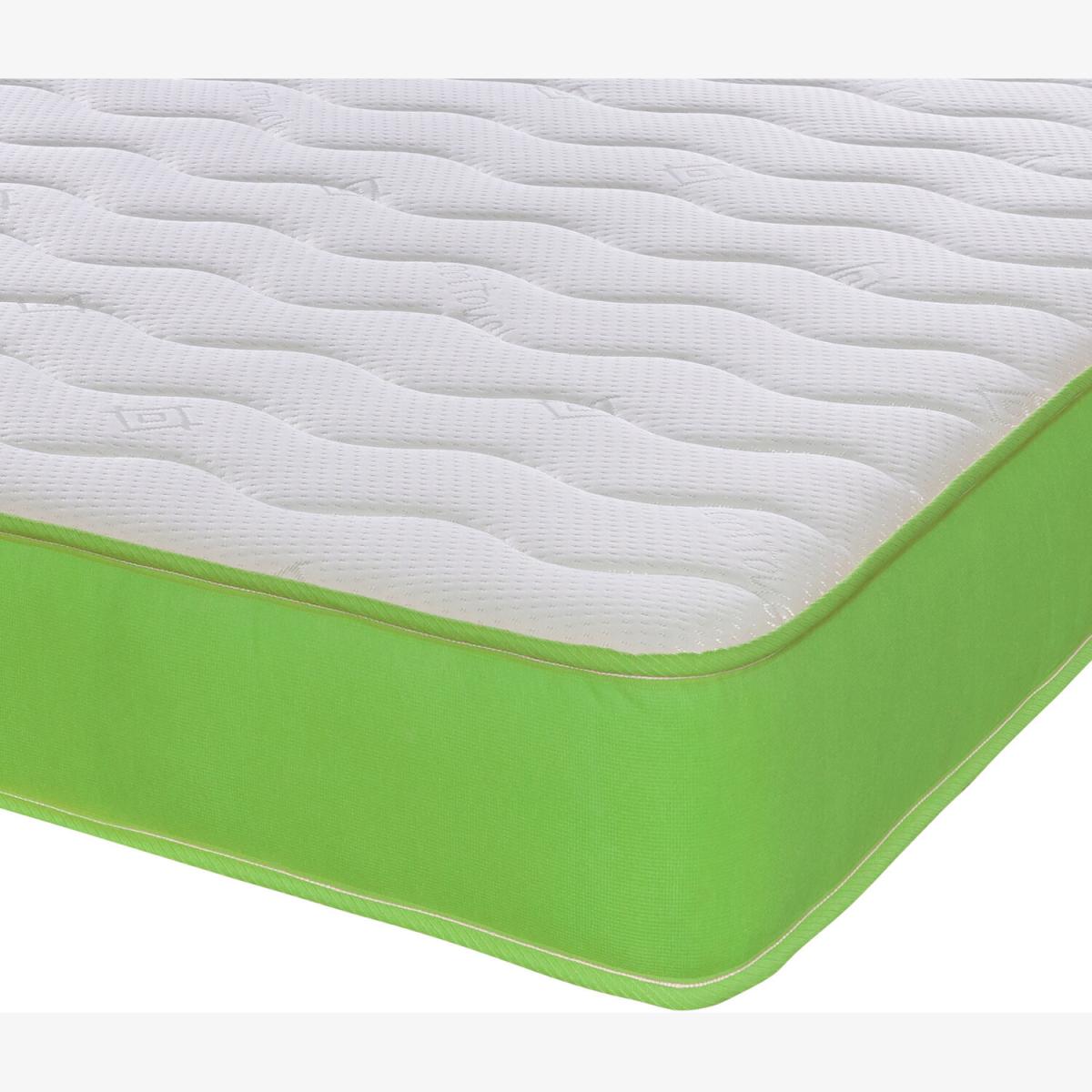 Great for bunk beds, cabin beds, day beds etc. Please check the size of your base before ordering as these will be difficult for you to return. This is our Cool Touch Essentials Green Wave 18cm Deep Hybrid Mattress. It has a double insulated European engineered open coil Bonnell spring unit with deep polyester comfort fillings (75 minimum recycled content), a layer of high-density visco-elastic memory foam and a Cool Touch Classic quilted sleeping surface in a wave design. It comes with a sophisticated green border. Ideal as a spare room mattress, great for kids or those on a budget, it is a medium soft feel mattress containing springs, comfort layers and a layer of high-density visco-elastic memory foam with a single sleeping side. You should rotate your mattress regularly to get the best from it. These are UK-made mattresses, produced in our West Yorkshire factory and are fully compliant with all relevant UK fire safety regulations for domestic use. We compress, vacuum pack and roll these mattresses so that they can be delivered quickly and cheaply to your door. You will need to allow a few hours after opening for your mattress to regain its shape and size. As these are produced with fresh, new memory foam, you may need to air in a dry, well-ventilated room, for up to 24 hours prior to use.