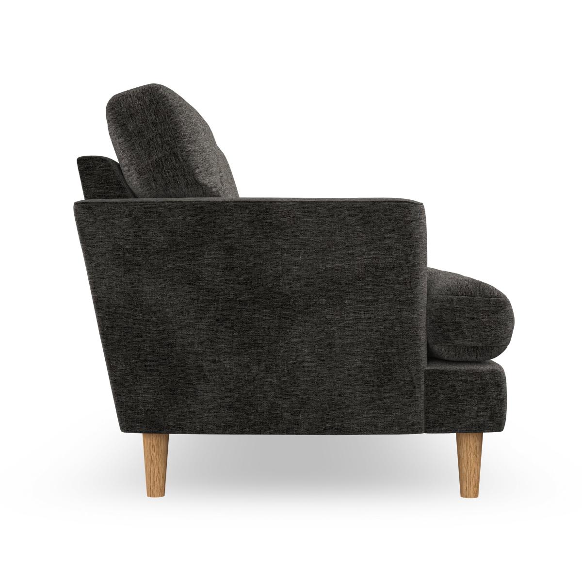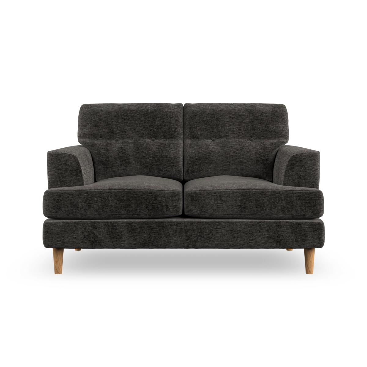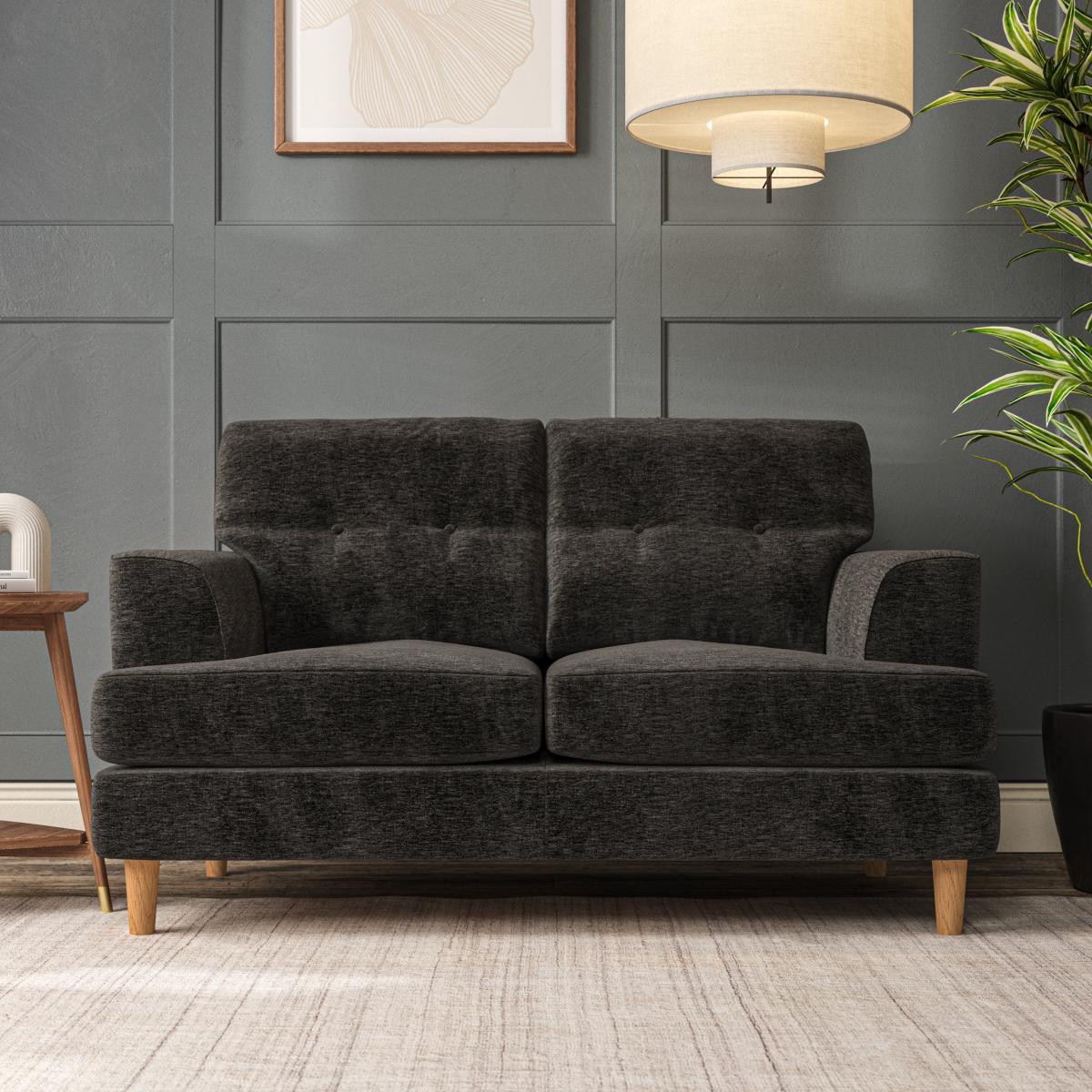 I love this little two-seater because of its versatile and contemporary design. It works well in both minimalist and cosy interiors, adding a modern touch without overwhelming the space. The neutral, dark fabric makes it easy to pair with colourful or patterned cushions for added visual interest. Practical styling tips include keeping accessories minimal for a sleek look, or layering with textured throws and cushions for a more inviting feel. Its rounded form and sturdy construction also make it a great choice for everyday use in living rooms that prioritise comfort and style.