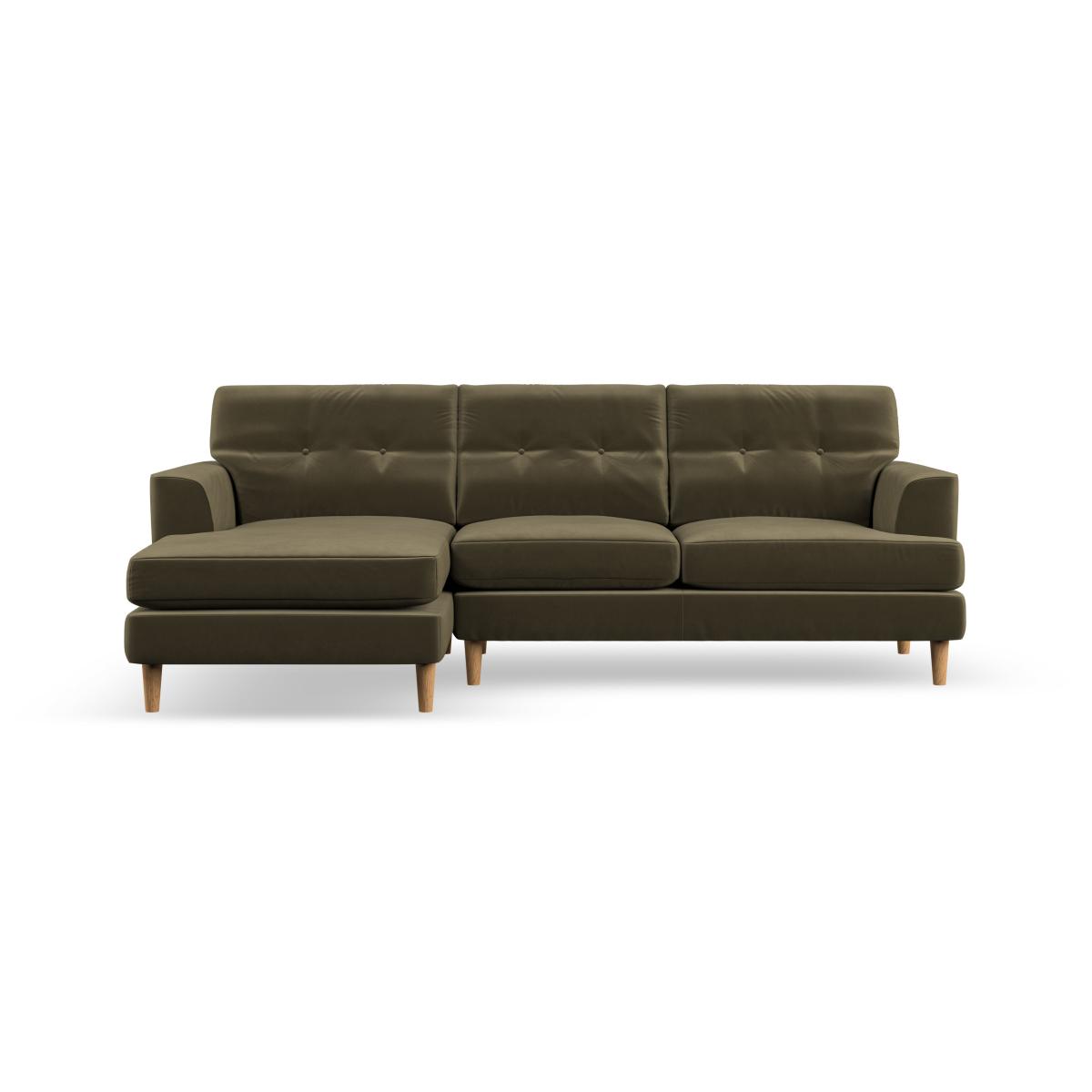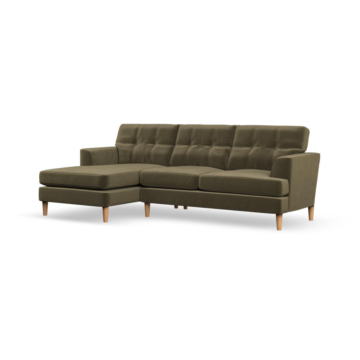 * Scandi inspired design* High legs* Button pull detailing* Choose the orientation, cushion filling, leg colour and fabric Combining Scandinavian elegance with everyday practicality, the Cooper 3 Seater Chaise Sofa is a stylish choice for modern living. Its sleek design features a high-leg frame and generous T-shaped seat cushions, while the fibre-filled back cushions, complete with button-pull detailing, offer both comfort and visual appeal. The chaise section provides an inviting space to stretch out and relax. Customisable options include fabric type, leg finish, and cushion filling, allowing you to tailor this sofa to your preferences.