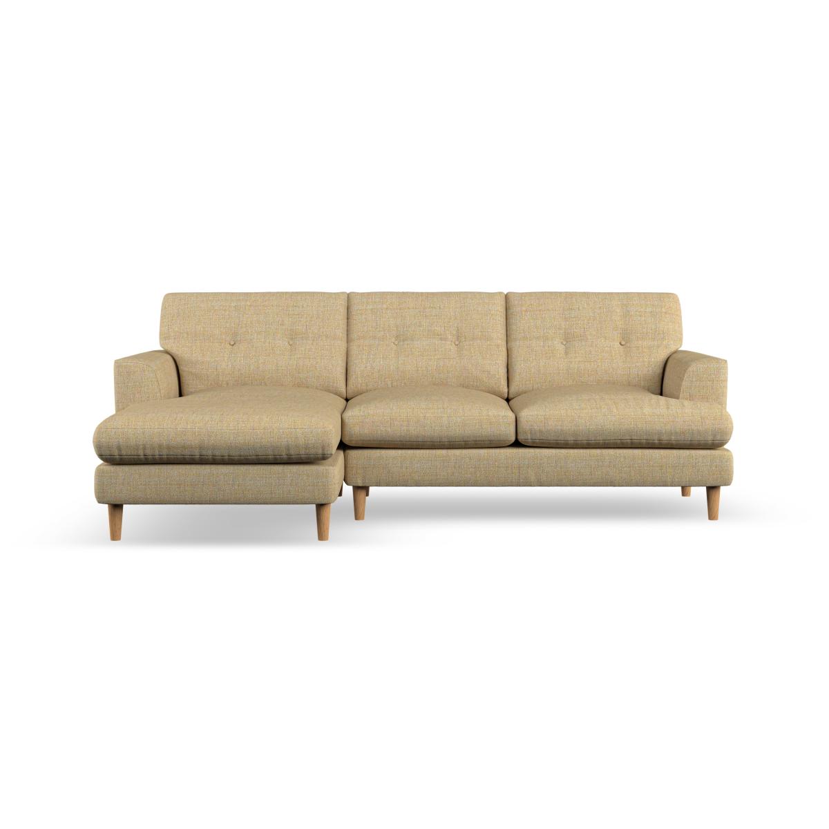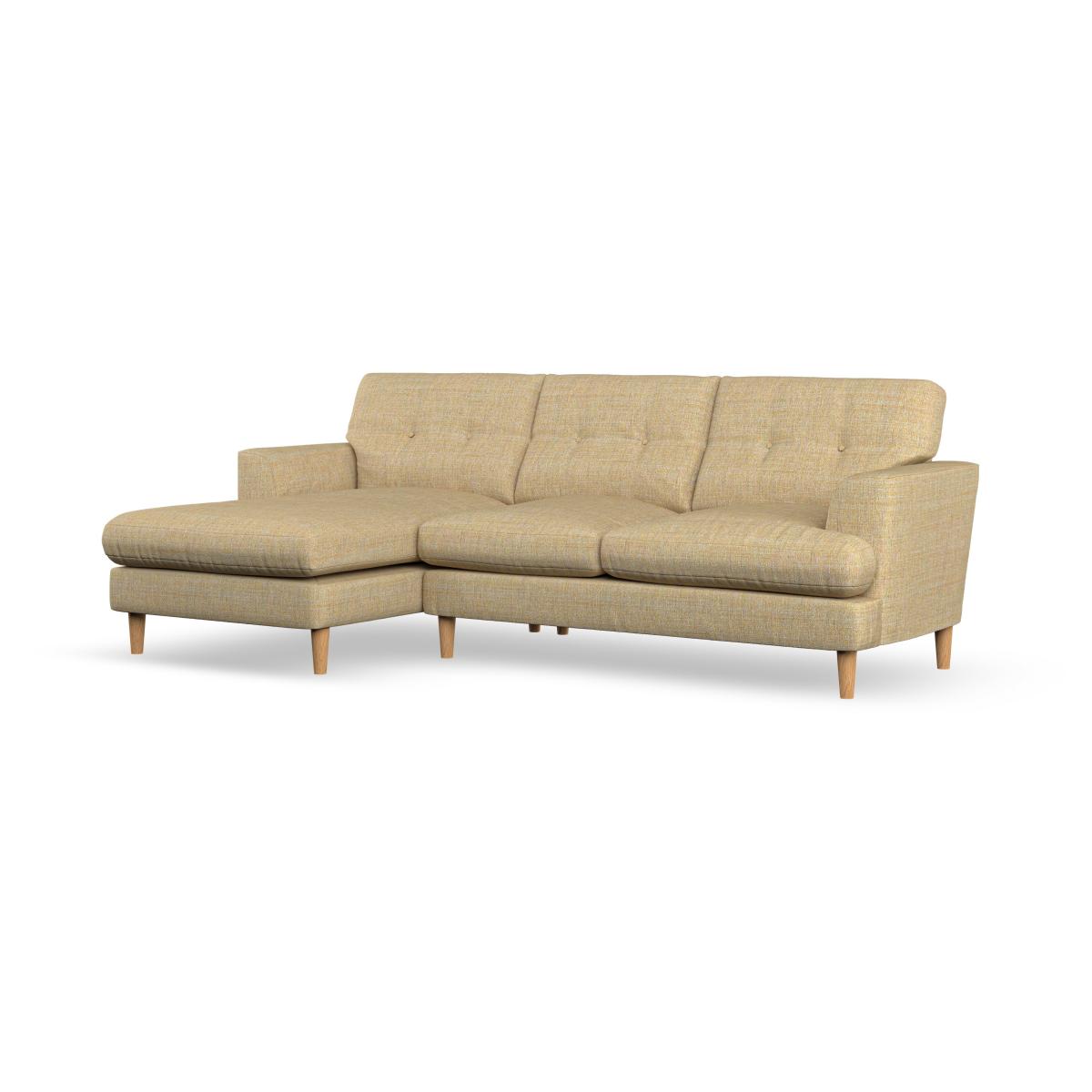 * Scandi inspired design* High legs* Button pull detailing* Choose the orientation, cushion filling, leg colour and fabric Combining Scandinavian elegance with everyday practicality, the Cooper 3 Seater Chaise Sofa is a stylish choice for modern living. Its sleek design features a high-leg frame and generous T-shaped seat cushions, while the fibre-filled back cushions, complete with button-pull detailing, offer both comfort and visual appeal. The chaise section provides an inviting space to stretch out and relax. Customisable options include fabric type, leg finish, and cushion filling, allowing you to tailor this sofa to your preferences.