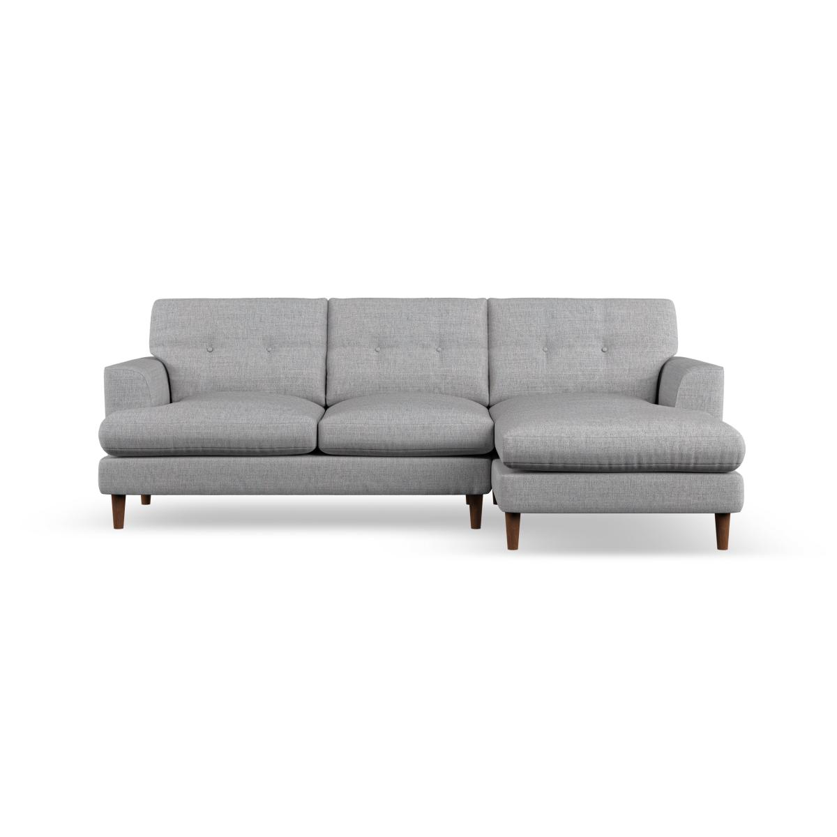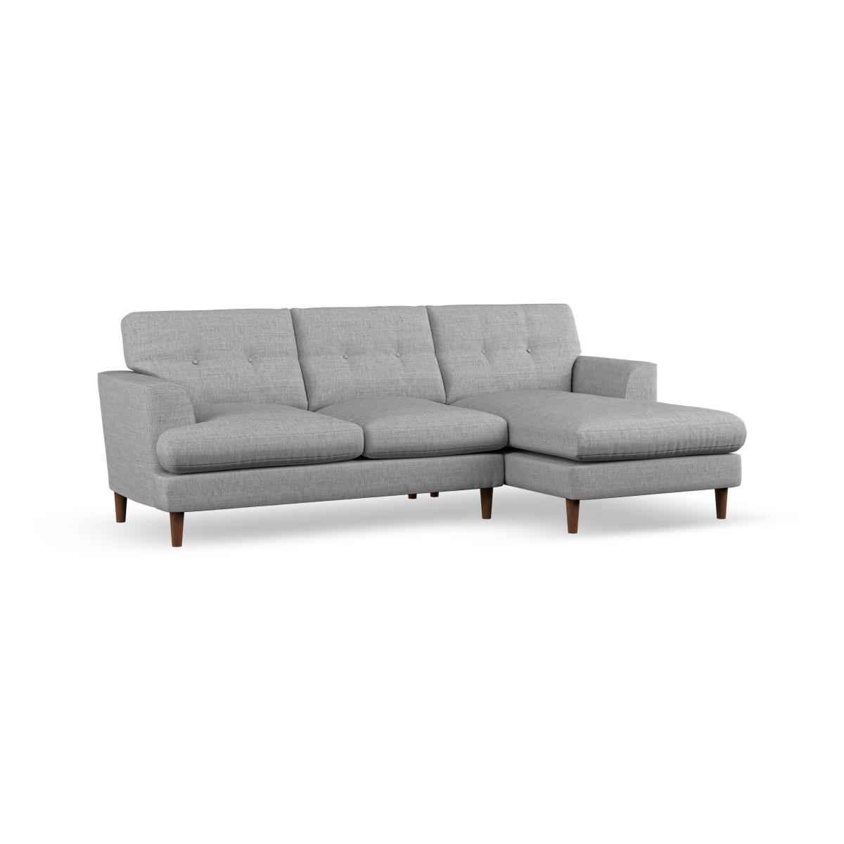 * Scandi inspired design* High legs* Button pull detailing* Choose the orientation, cushion filling, leg colour and fabric Combining Scandinavian elegance with everyday practicality, the Cooper 3 Seater Chaise Sofa is a stylish choice for modern living. Its sleek design features a high-leg frame and generous T-shaped seat cushions, while the fibre-filled back cushions, complete with button-pull detailing, offer both comfort and visual appeal. The chaise section provides an inviting space to stretch out and relax. Customisable options include fabric type, leg finish, and cushion filling, allowing you to tailor this sofa to your preferences.