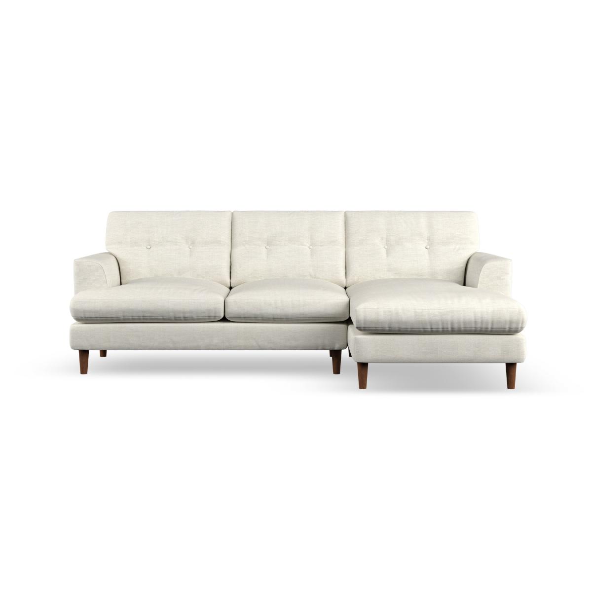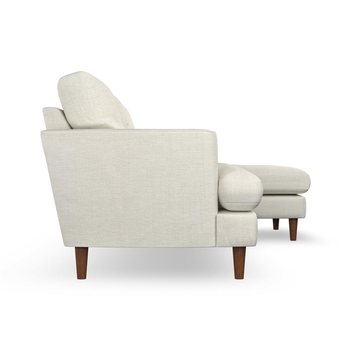 * Scandi inspired design* High legs* Button pull detailing* Choose the orientation, cushion filling, leg colour and fabric Combining Scandinavian elegance with everyday practicality, the Cooper 3 Seater Chaise Sofa is a stylish choice for modern living. Its sleek design features a high-leg frame and generous T-shaped seat cushions, while the fibre-filled back cushions, complete with button-pull detailing, offer both comfort and visual appeal. The chaise section provides an inviting space to stretch out and relax. Customisable options include fabric type, leg finish, and cushion filling, allowing you to tailor this sofa to your preferences.