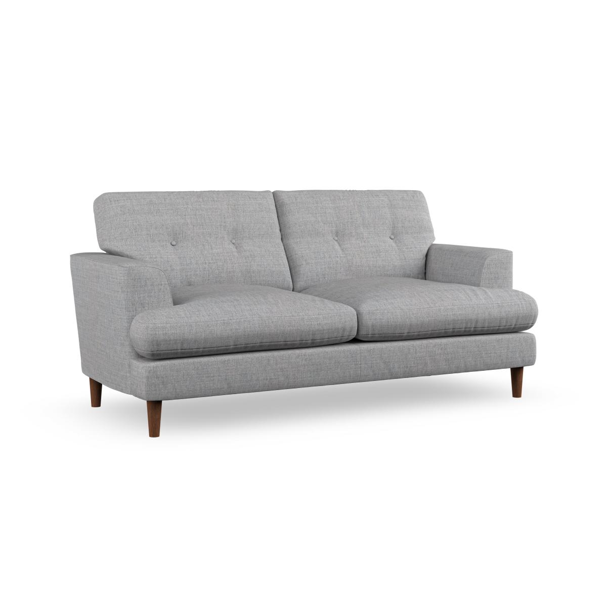 * Scandi inspired design* High legs* Button pull detailing* Choose the cushion filling, leg colour and fabric The Cooper 3 Seater Sofa is a versatile and stylish addition to any home. Its sleek Scandinavian design features high legs, clean lines, and T-shaped seat cushions for a modern look. The fibre-filled back cushions, accented by button-pull detailing, provide a supportive and comfortable seating experience. Available in a range of fabrics, leg finishes, and cushion fillings, the Cooper 3 Seater Sofa can be tailored to match your décor.