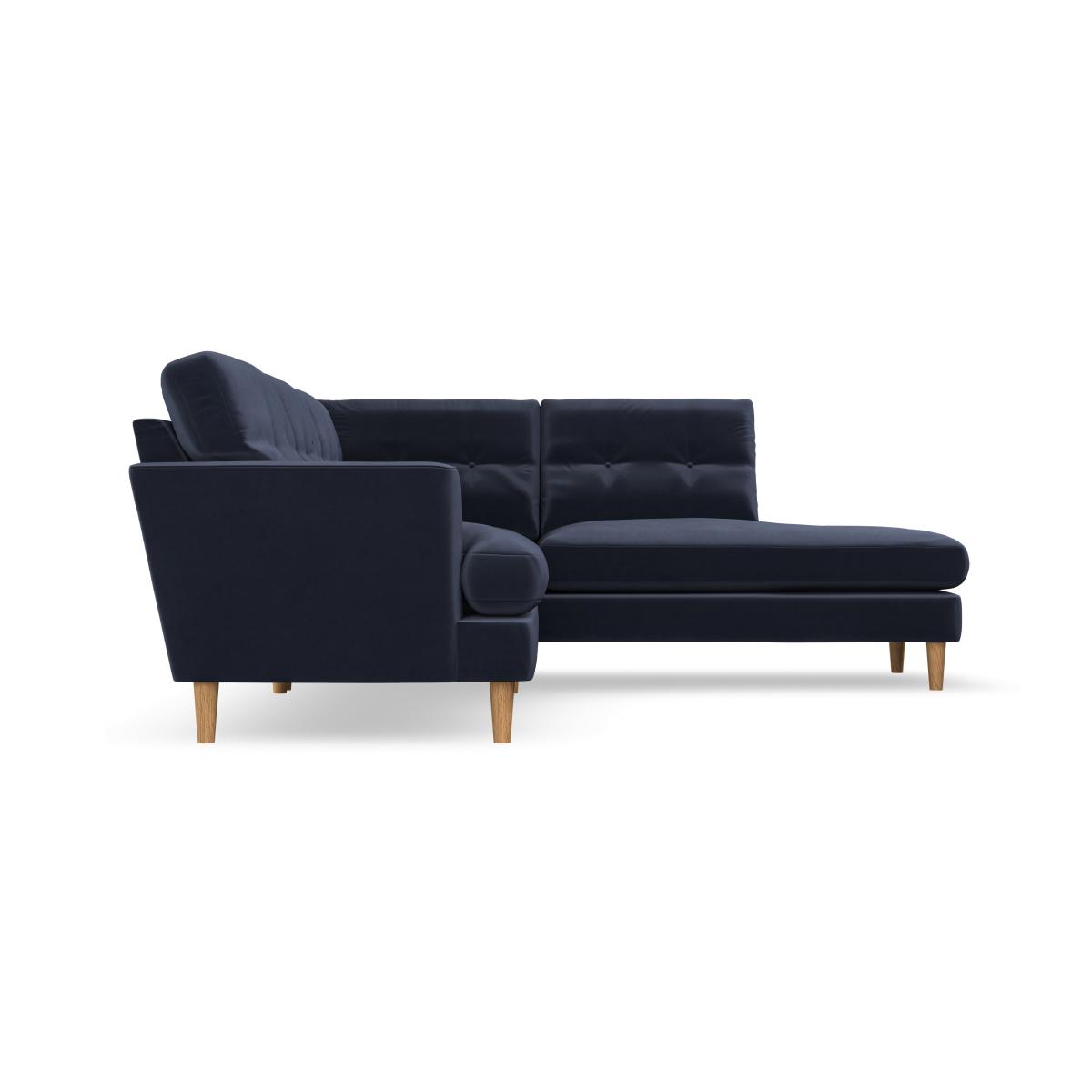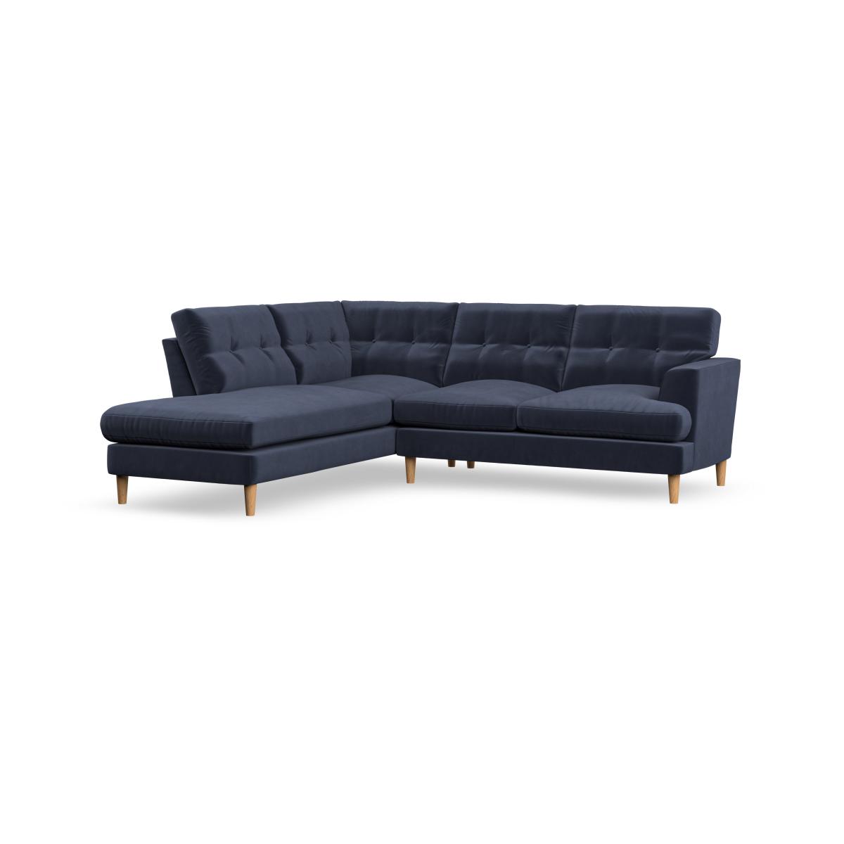 * Scandi inspired design* High legs* Button pull detailing* Choose the orientation, cushion filling, leg colour and fabric The Cooper 4 Seater Corner Chaise Sofa offers a perfect blend of Scandinavian-inspired design and functional comfort. Its clean lines, elegant high legs, and generous T-shaped seat cushions make it a sophisticated addition to any living space. The button-pulled detailing on the fibre-filled back cushions adds a touch of timeless charm, while also ensuring exceptional comfort and support. With ample seating space and a chaise for lounging, this sofa is perfect for relaxing with family or entertaining guests. Customise it with your choice of fabric, leg finish, and cushion filling to suit your personal style.