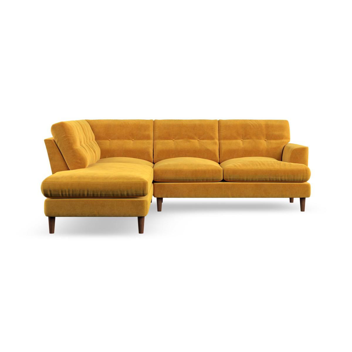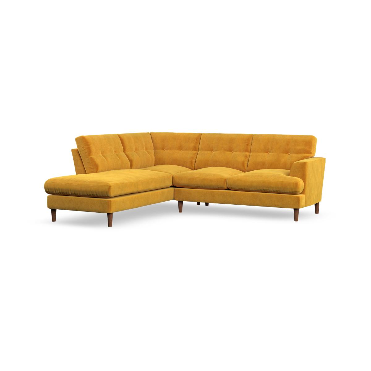 * Scandi inspired design* High legs* Button pull detailing* Choose the orientation, cushion filling, leg colour and fabric The Cooper 4 Seater Corner Chaise Sofa offers a perfect blend of Scandinavian-inspired design and functional comfort. Its clean lines, elegant high legs, and generous T-shaped seat cushions make it a sophisticated addition to any living space. The button-pulled detailing on the fibre-filled back cushions adds a touch of timeless charm, while also ensuring exceptional comfort and support. With ample seating space and a chaise for lounging, this sofa is perfect for relaxing with family or entertaining guests. Customise it with your choice of fabric, leg finish, and cushion filling to suit your personal style.