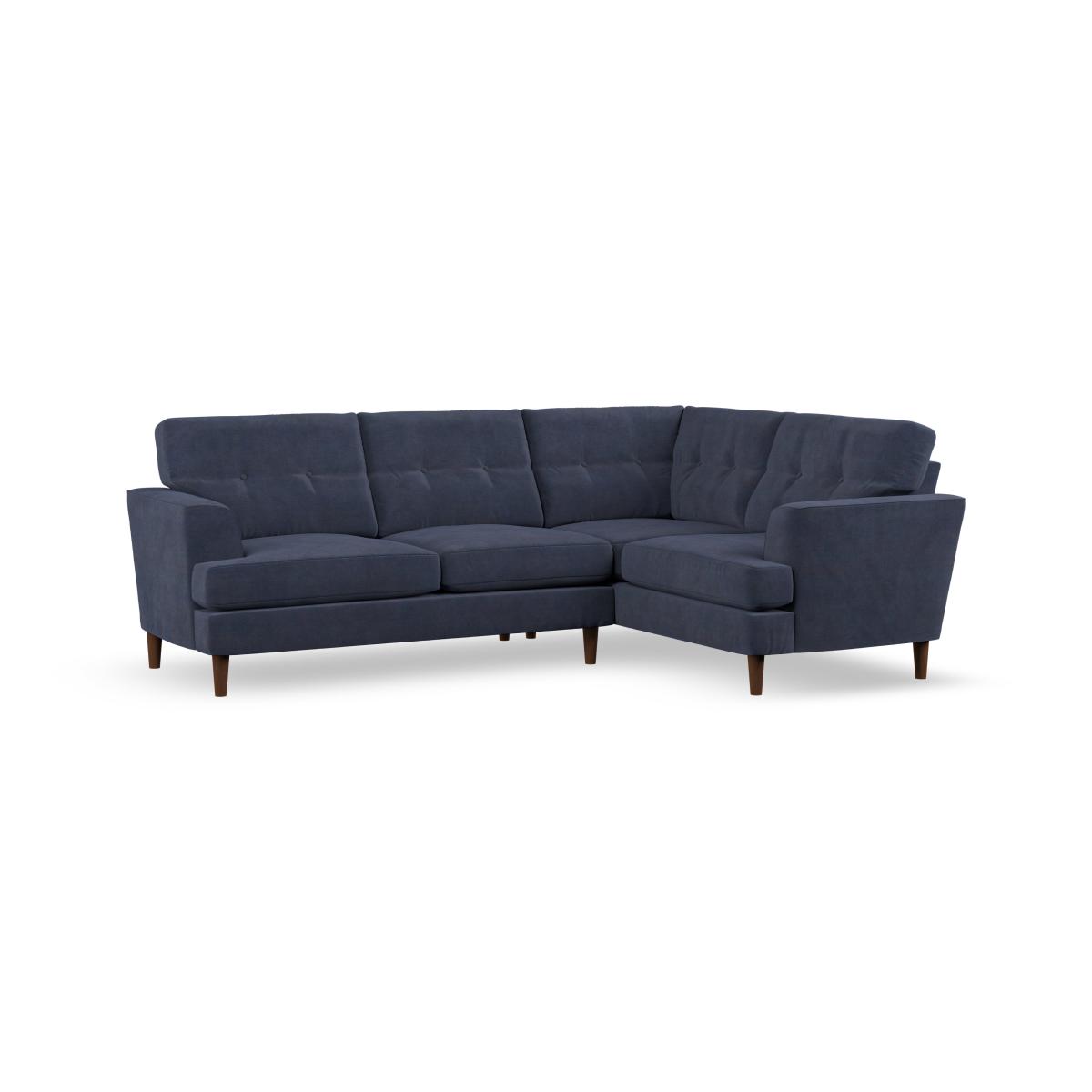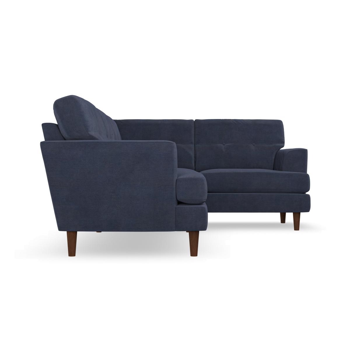 * Scandi inspired design* High legs* Button pull detailing* Right hand facing* Choose the cushion filling, leg colour and fabric The Cooper 5 Seater Corner Sofa combines spacious seating with Scandinavian-inspired sophistication. Perfect for larger living rooms, its high-leg design, clean lines, and T-shaped seat cushions create a modern and inviting aesthetic. The generously fibre-filled back cushions feature button-pull detailing, delivering exceptional comfort and support. Ideal for gatherings or family lounging, this sofa offers customisable options, including fabric type, leg finish, and cushion filling.