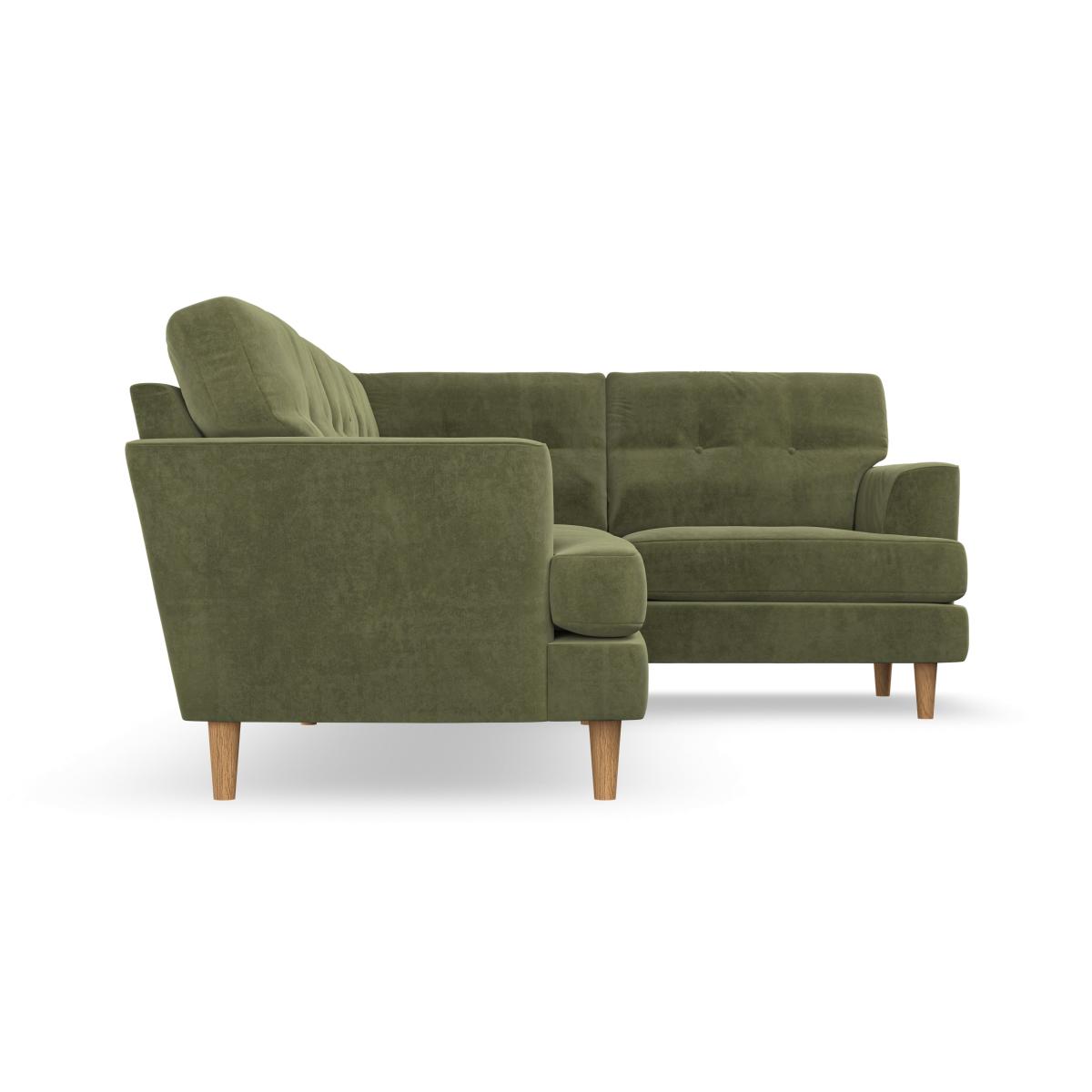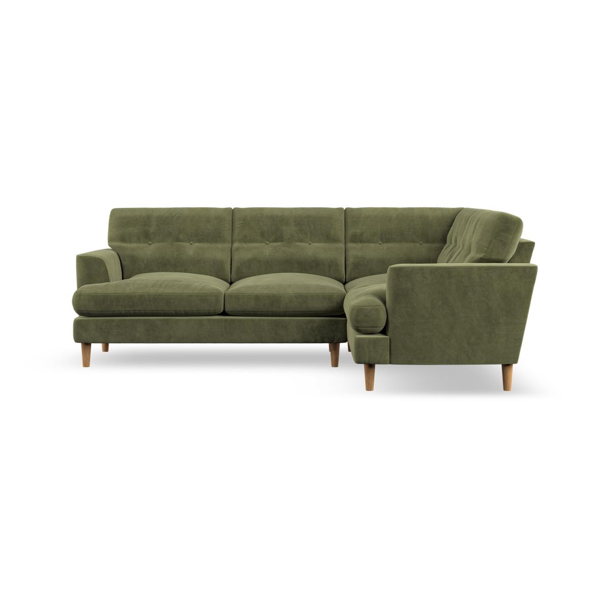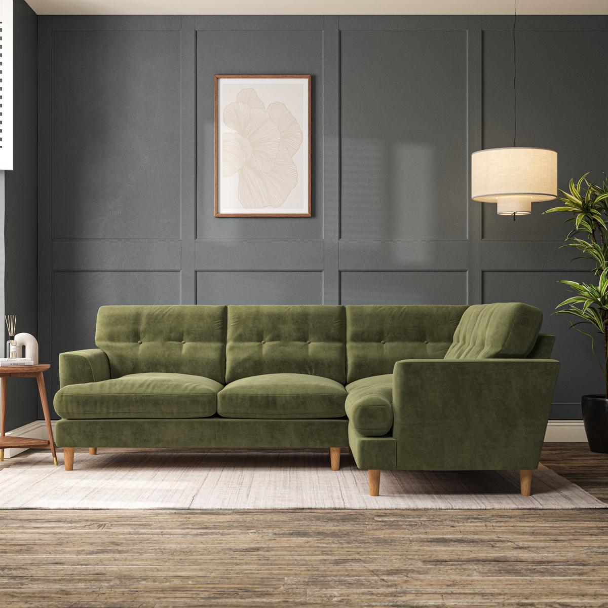 I love this corner sofa for its versatile style and practical build. Its plush, green velvet upholstery lends a cosy yet sophisticated vibe, making it a great focal point in both contemporary and mid-century styled interiors. It's ideal for larger open-plan living spaces or family rooms, where comfort and socialising are priorities. To style it effectively, consider pairing with neutral or patterned cushions for added texture, and keep surrounding decor minimal to highlight the sofa’s shape and colour. A simple rug underneath can ground the space, while strategically placing lighting can create a warm, inviting atmosphere. This piece works particularly well in homes that embrace colour and comfort, providing a stylish yet practical seating solution.