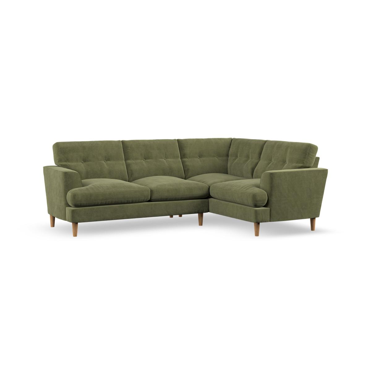 * Scandi inspired design* High legs* Button pull detailing* Right hand facing* Choose the cushion filling, leg colour and fabric The Cooper 5 Seater Corner Sofa combines spacious seating with Scandinavian-inspired sophistication. Perfect for larger living rooms, its high-leg design, clean lines, and T-shaped seat cushions create a modern and inviting aesthetic. The generously fibre-filled back cushions feature button-pull detailing, delivering exceptional comfort and support. Ideal for gatherings or family lounging, this sofa offers customisable options, including fabric type, leg finish, and cushion filling.