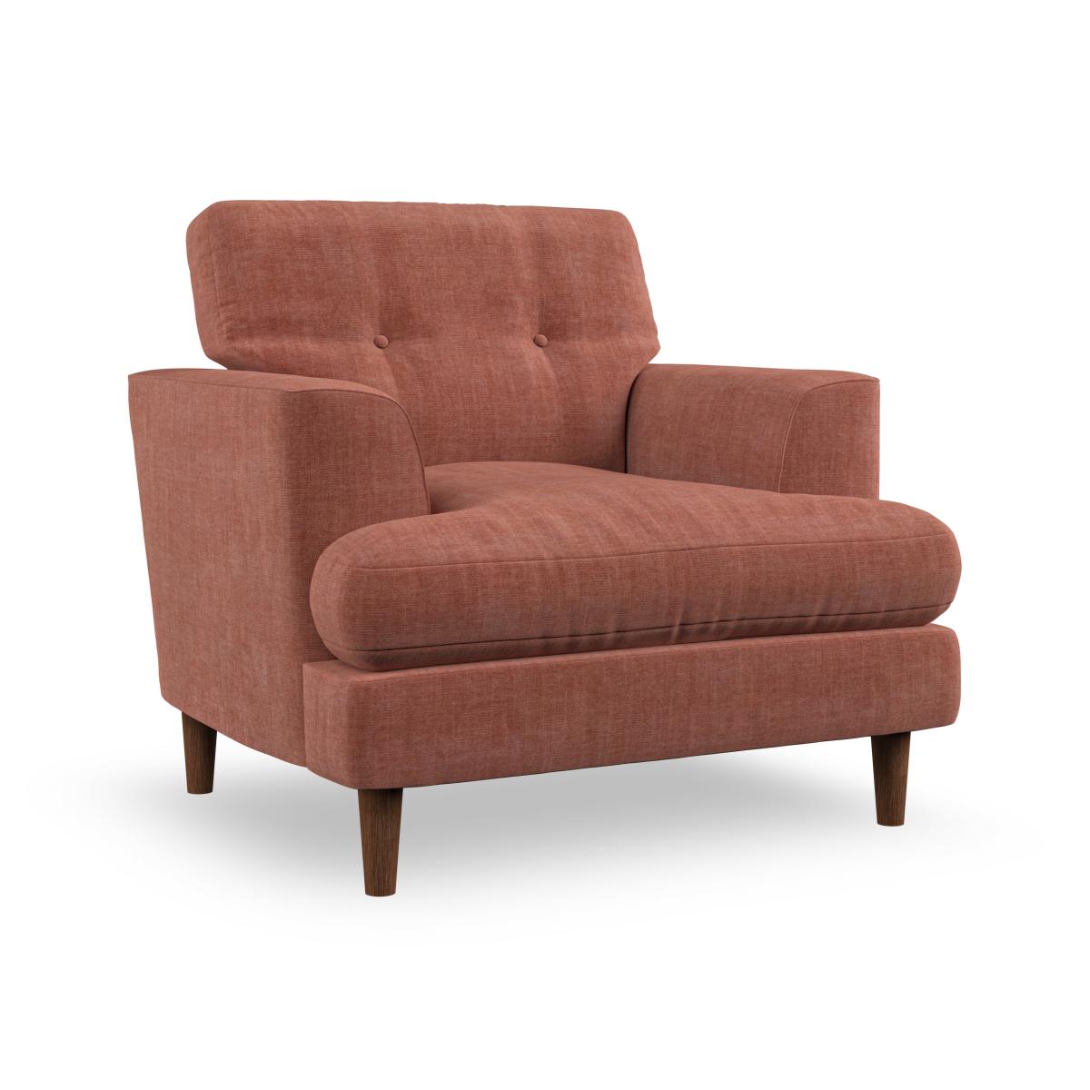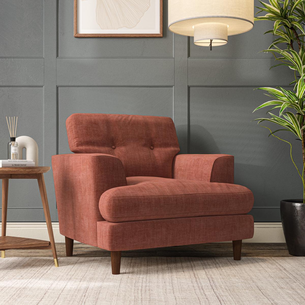 I’m a fan of the Cooper chair for its generous, curved silhouette and hard-wearing woven fabric - it adds substance without looking bulky. The muted terracotta tone sits comfortably in mid-century, Scandi or contemporary schemes and pairs well with natural timber and rattan accents. To style it, drape a neutral wool throw over one arm and perch a slim linen cushion in a complementary shade. Position it beside a simple black metal floor lamp or a round oak side table to create a relaxed reading corner.