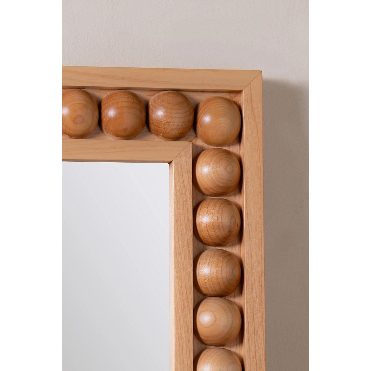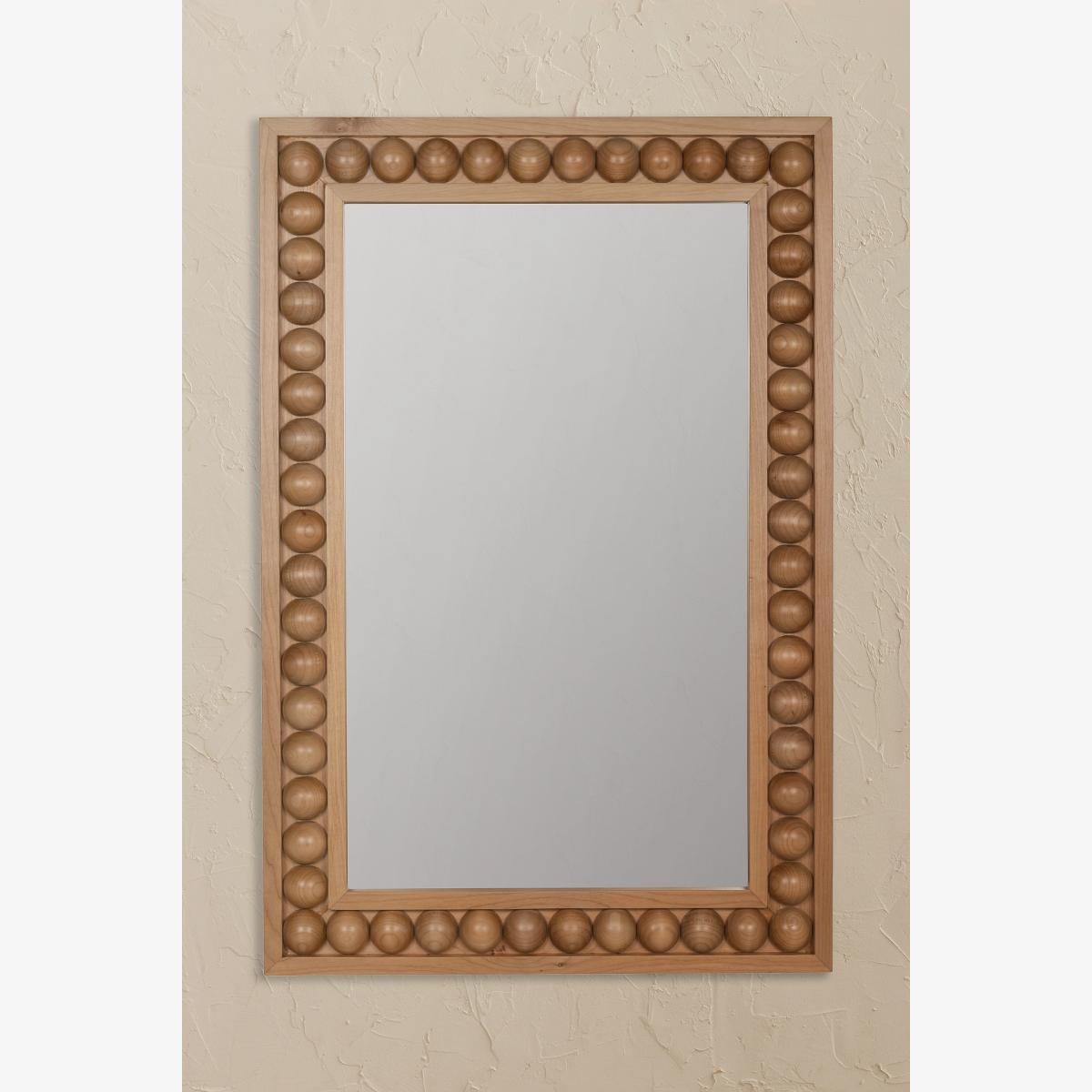 I love this mirror for its contemporary take on classic design - the beaded wooden frame adds texture and visual interest without overwhelming the space. It works well in a variety of interiors, from modern and Scandinavian to bohemian or traditional settings, providing a warm, organic touch. Practical styling tips include placing it above a console or mantel to create a focal point, or using it in a hallway to maximise light and sense of space. To keep it looking its best, pair it with natural fibres or wooden furniture to enhance its warm tones, and consider grouping it with other mirrors or artwork for an eclectic, layered look.