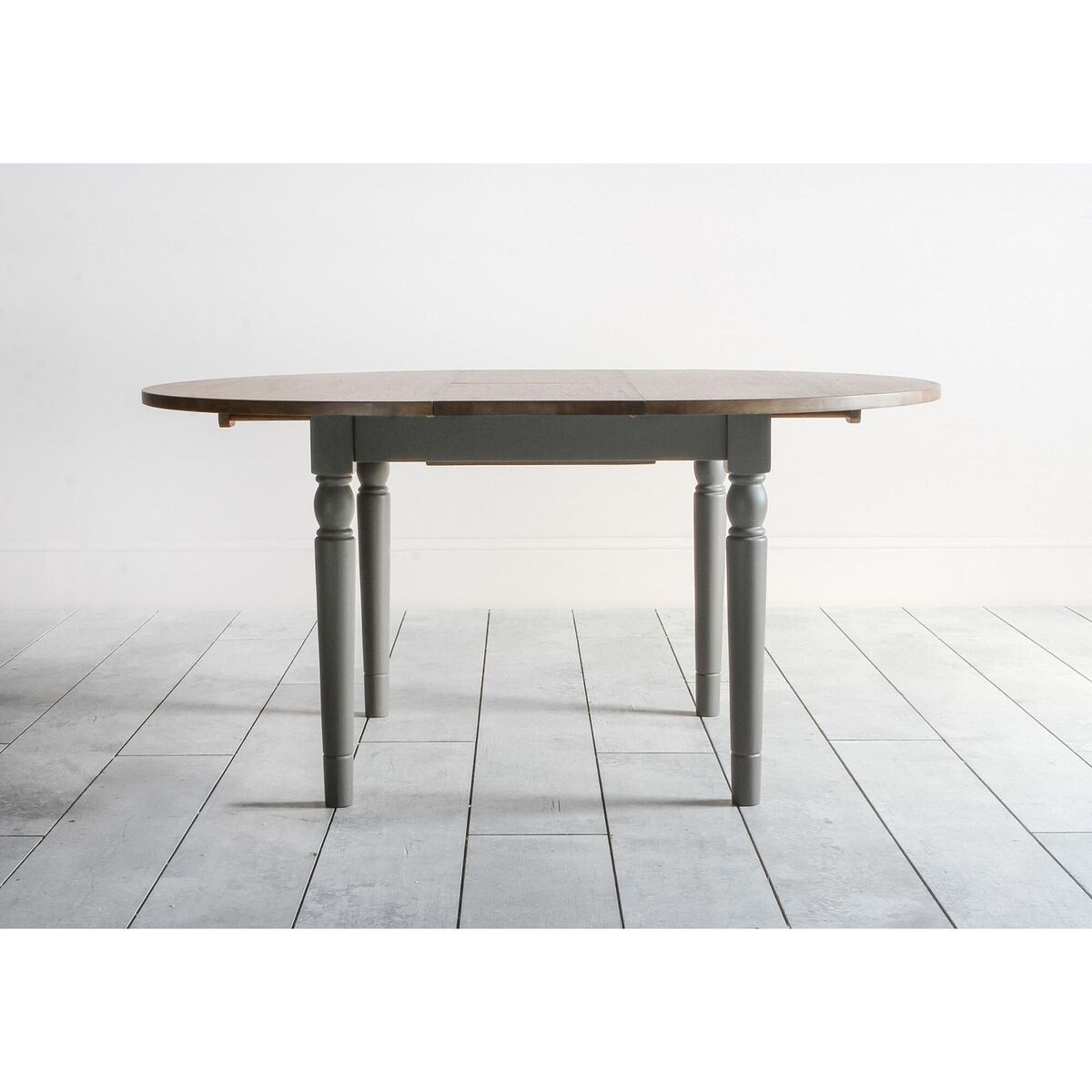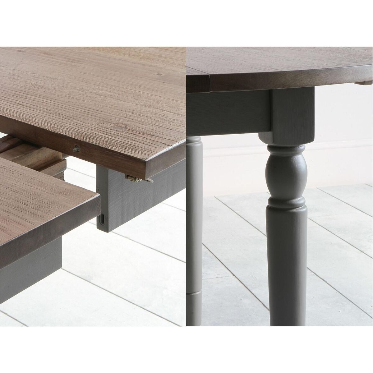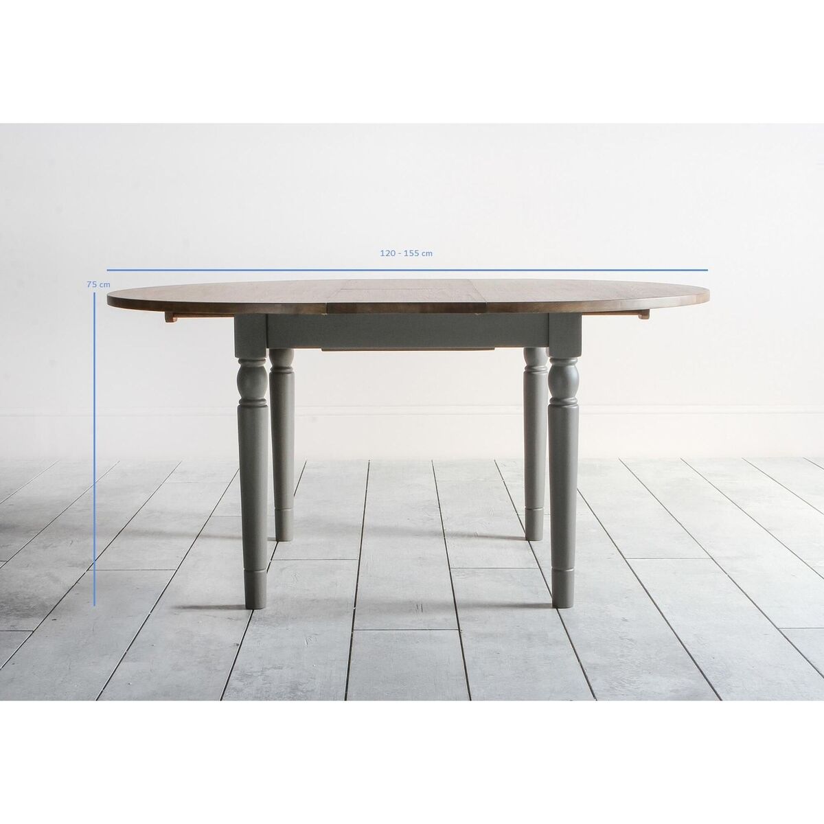 Introducing the Cooper round dining table, an updated farmhouse design that's ideal for modern country interiors. The Cooper is spacious enough for a family to sit down to enjoy everyday meals and extendable from 120cm up to 155cm. This piece is constructed with an oak veneer top and solid oak legs and base with a rich Storm Grey finish. The Cooper stands out for the beautiful features of its natural top and its gracefully carved legs. This dining table is a centrepiece in itself and very easy to blend in any colour palette. Pair it with the matching Cooper chairs to achieve a farmhouse luxe look and let your guests stare in awe at its stunning beauty.