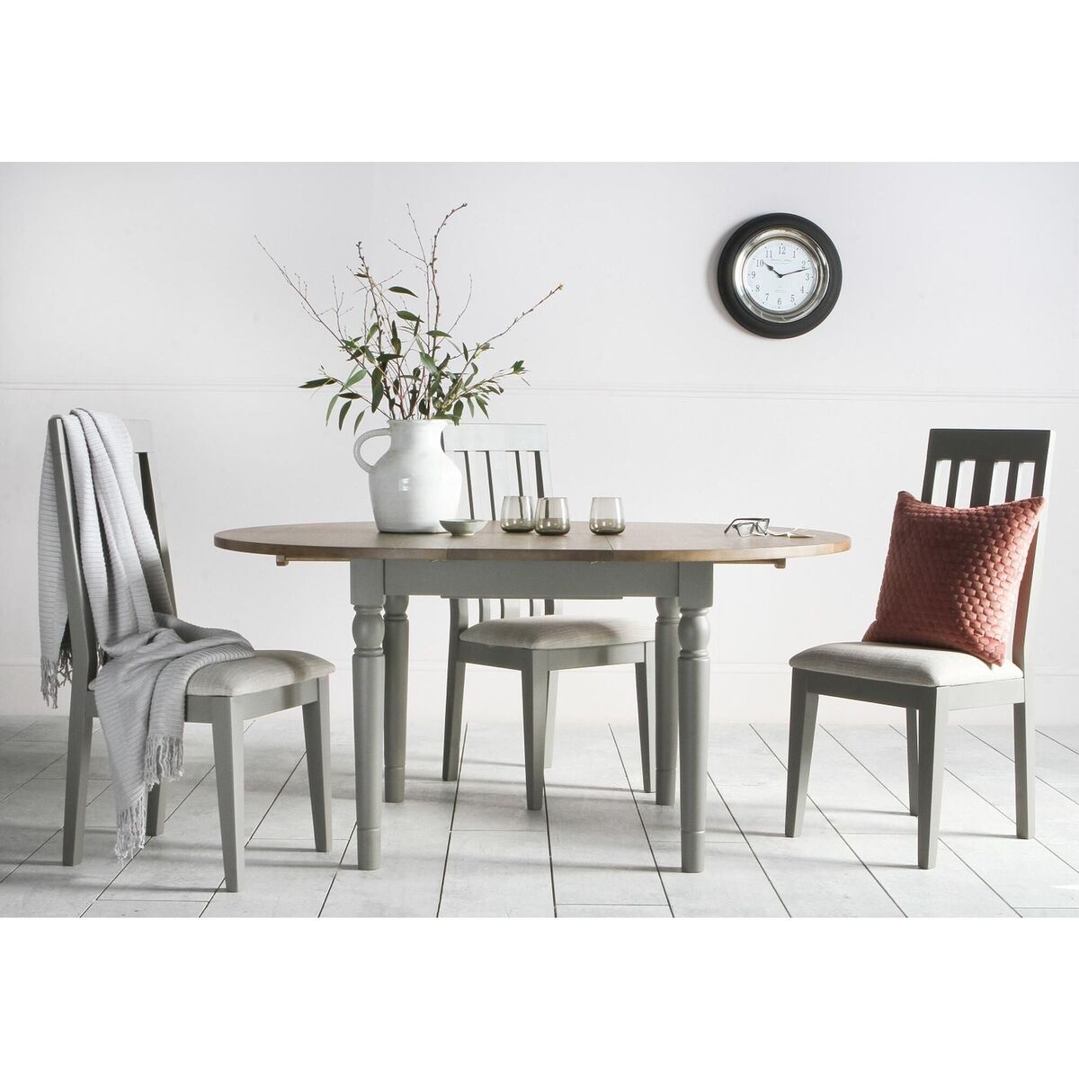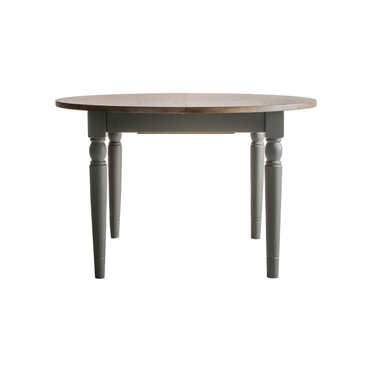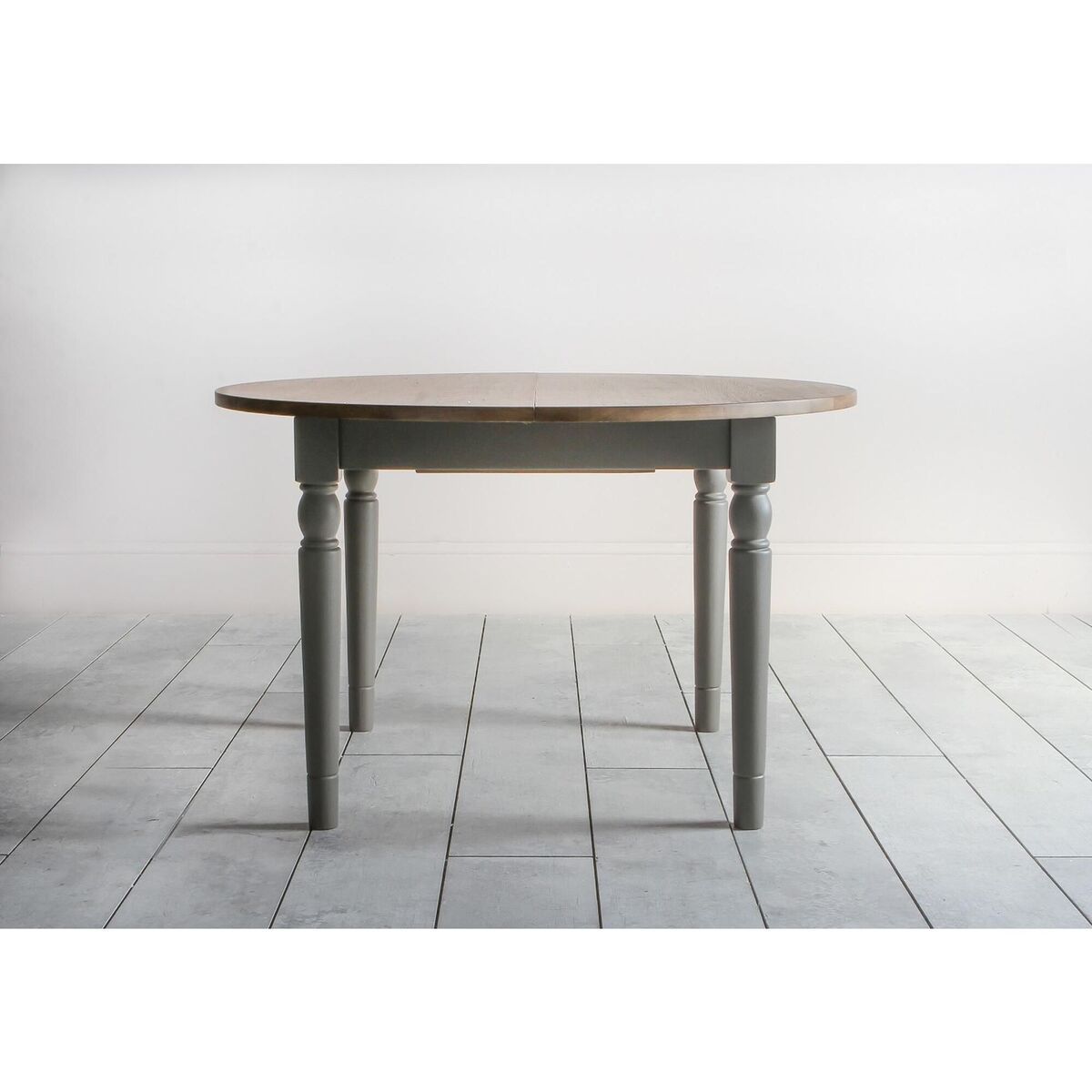 Introducing the Cooper round dining table, an updated farmhouse design that's ideal for modern country interiors. The Cooper is spacious enough for a family to sit down to enjoy everyday meals and extendable from 120cm up to 155cm. This piece is constructed with an oak veneer top and solid oak legs and base with a rich Storm Grey finish. The Cooper stands out for the beautiful features of its natural top and its gracefully carved legs. This dining table is a centrepiece in itself and very easy to blend in any colour palette. Pair it with the matching Cooper chairs to achieve a farmhouse luxe look and let your guests stare in awe at its stunning beauty.