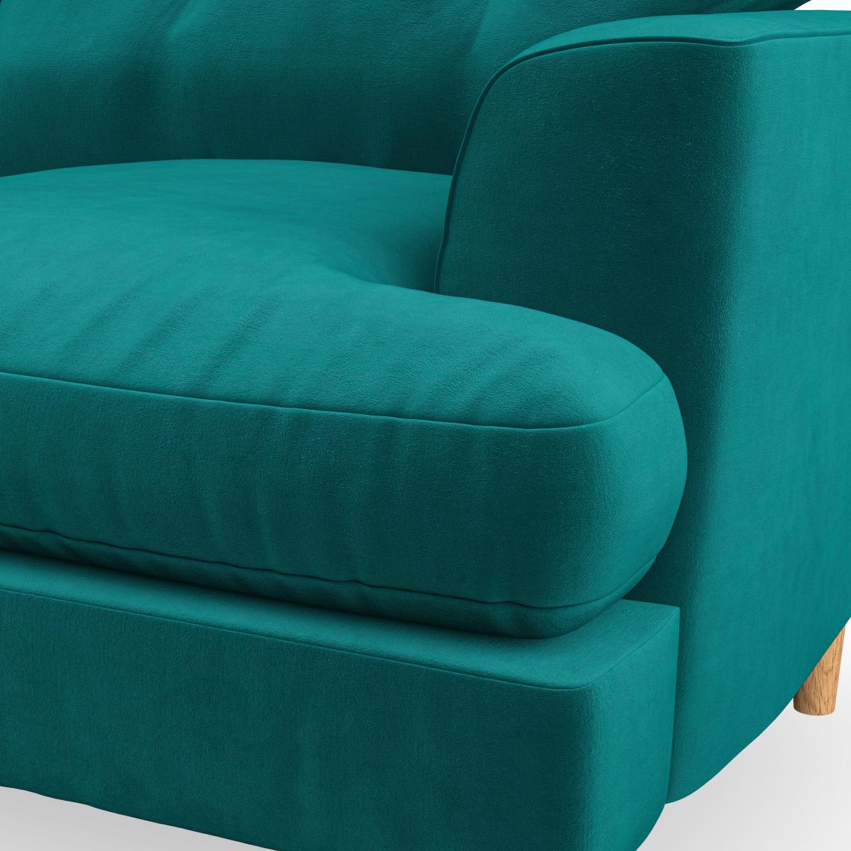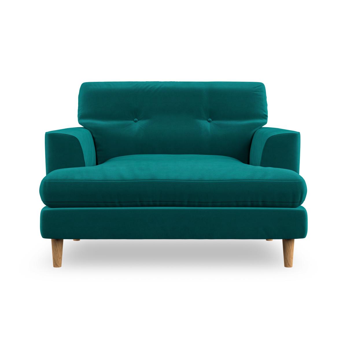 * Scandi inspired design* High legs* Button pull detailing* Choose the cushion filling, leg colour and fabric The Cooper Snuggle Chair is a compact yet luxurious seating option, perfect for creating a cosy retreat. Its Scandinavian-inspired design features clean lines, an elegant high leg, and a generous T-shaped seat cushion. The fibre-filled back cushion is adorned with classic button-pull detailing, ensuring both comfort and style. Customise this snug chair with your preferred fabric, leg finish, and cushion filling to suit your décor.