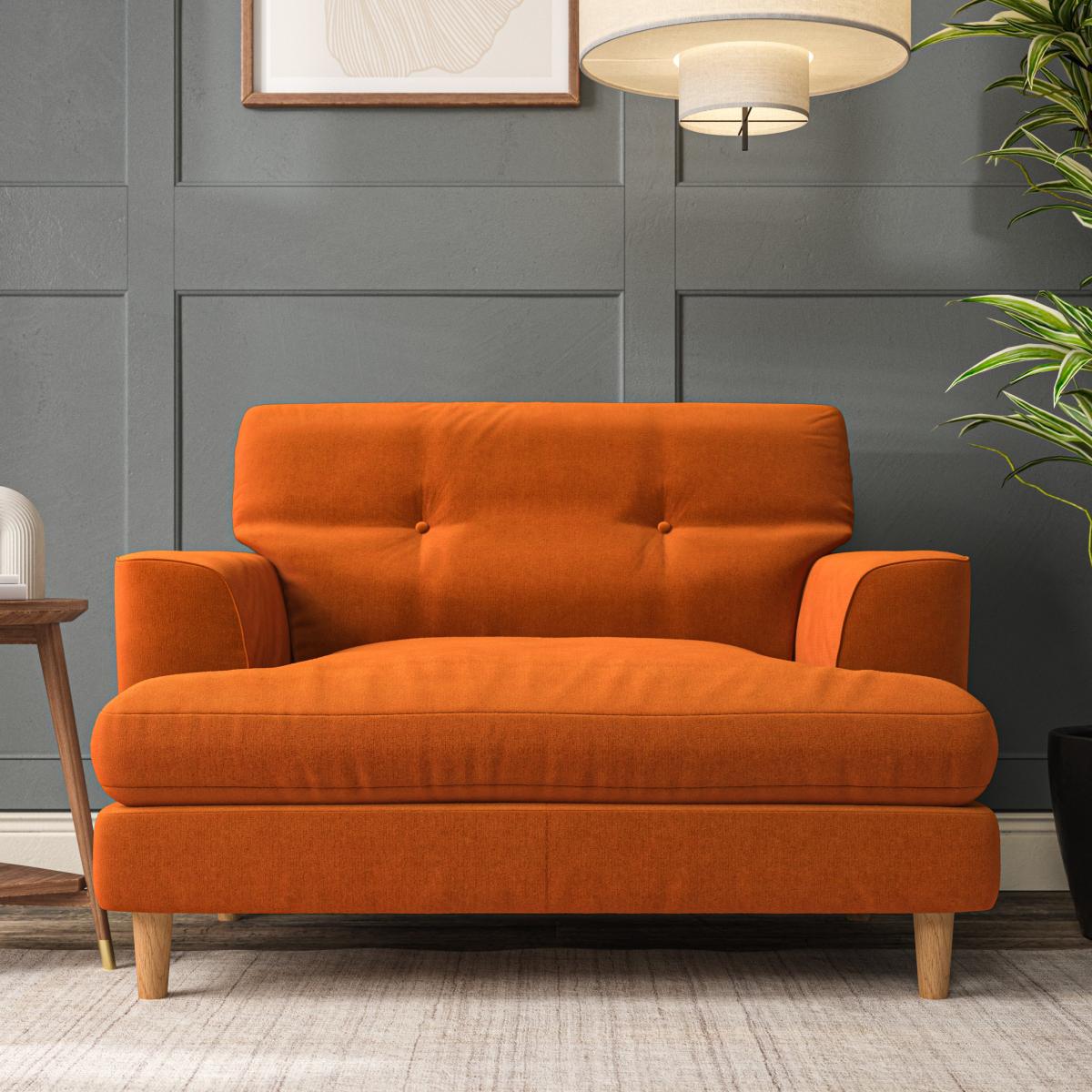 I love the cozy yet stylish vibe of this little snuggle chair-it's perfect for creating inviting spaces without overwhelming a room. Its warm, burnt-orange tone works well in both modern and vintage-inspired interiors, adding a pop of colour while still feeling welcoming. It pairs beautifully with neutral tones or earthy palettes, and can be styled with layered textiles like soft throws or patterned cushions for added comfort. For practical styling, position it near a reading nook or as a statement piece in a compact living area, and keep accessories minimal to let its colour and shape shine. Its compact size makes it versatile for smaller rooms or as an accent piece in larger setups.
