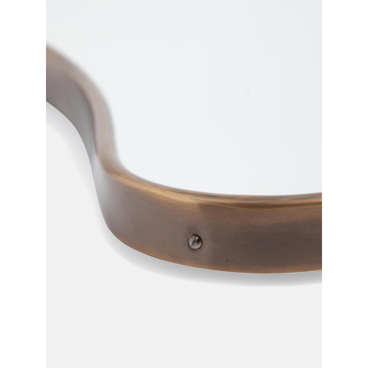 Inspired by vintage 1960s Italian modernist mirrors and seen at DUMBO House, the Cooper mirror features a sleek, curved frame in an antique brass finish. Designed to open a room by giving the illusion of more space and light, place above a mantelpiece or in the bathroom for a classic Soho House feel. Curved wall mirror Part of our Cooper mirror range Antique brass finish Suitable for bathroom use Inspired by vintage 1960s Italian modernist mirrors As seen at DUMBO House