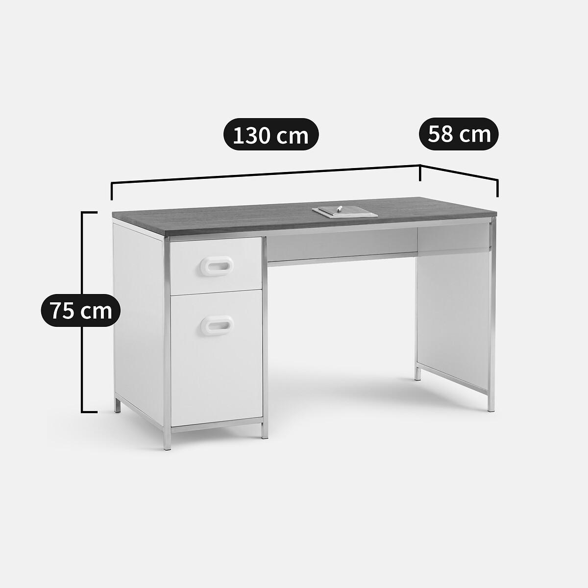 For fans of retro furniture, here is the Cooven desk. A duo of chrome steel and lacquered wood, a super functional unit with the characteristic style of seventies furniture. Practical with a vintage twist, it’s a creation by La Redoute Interiors. Product Details • 1 caisson avec 1 tiroir + 1 porte • MDF top with walnut veneer • 1 unit with 1 drawer + 1 door • Polyurethane varnish finish • FSC® certified wood • Matte finish chrome steel baseDimensions. Overall • Width: 130cm • Height: 75cm • Depth: 58cm • Weight: 44.7kg. Usable space • Drawer: L30 x H13 x D39cm • 1-door unit:L34 x H43.5 x D56cm • Height of legs: 6cmDelivery:. This product requires assembly. Available for home delivery. • WOOD FROM MORE SUSTAINABLY MANAGED FORESTS AND CONTROLLED SOURCES. FSC® Mix wood contains at least 70% FSC® certified and/or recycled wood, the remainder being FSC® controlled wood. Dimensions and weight of parcel2 parcels • L86 x H18.5 x D69.5cm. 28.5kg. • L142.5 x H10.5 x D70.5cm. 23.6kg.