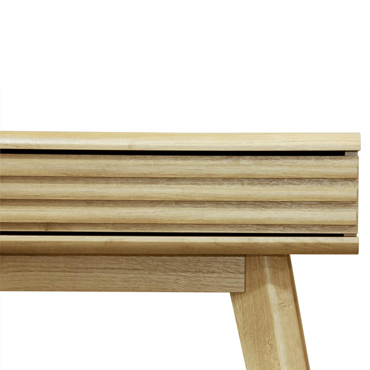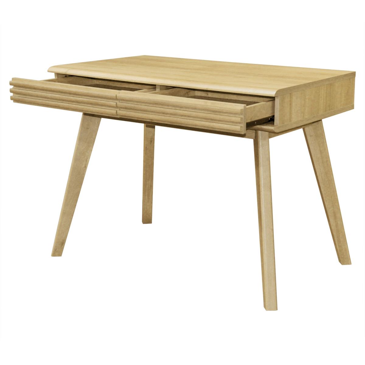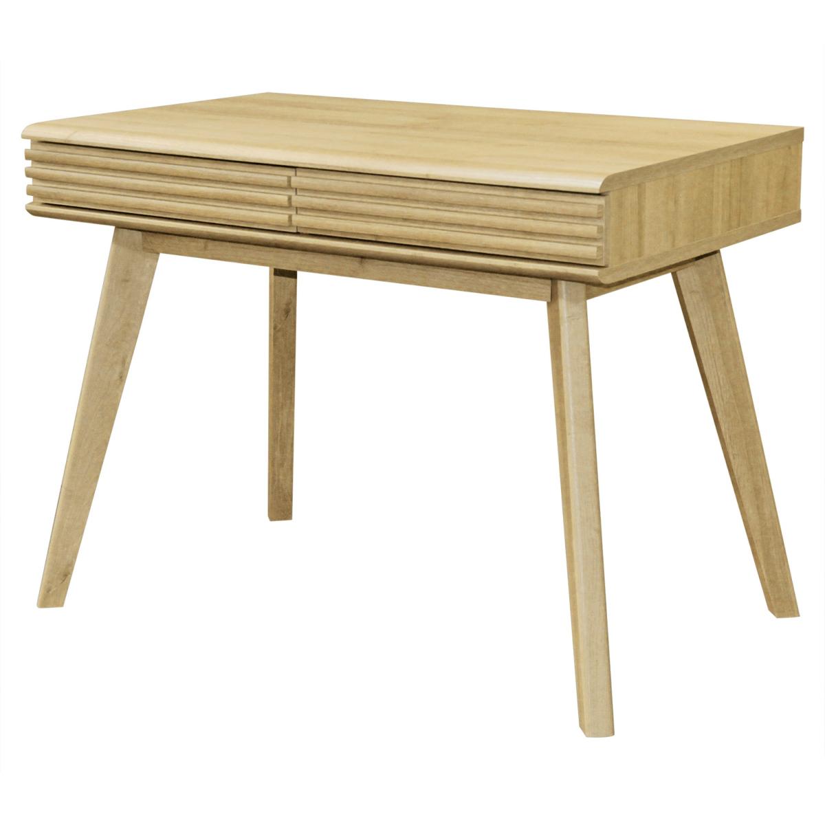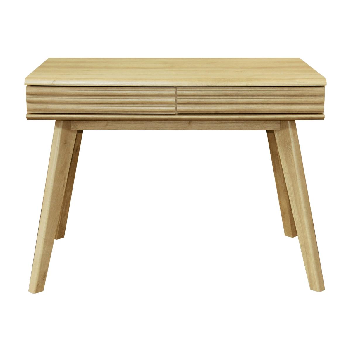 * Wooden Desk* Slatted Drawers* Easy to Assemble This remarkable piece features sliding slatted drawers that effortlessly combine functionality with a touch of artistic elegance. With the inclusion of two drawers, it offers a versatile and organised workspace solution. Its slatted drawers not only add an element of sophistication but also ensure practicality, making it an exceptional addition that embodies the fusion of Japanese and Scandinavian design elements.