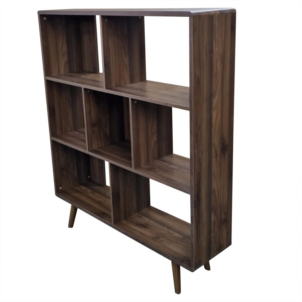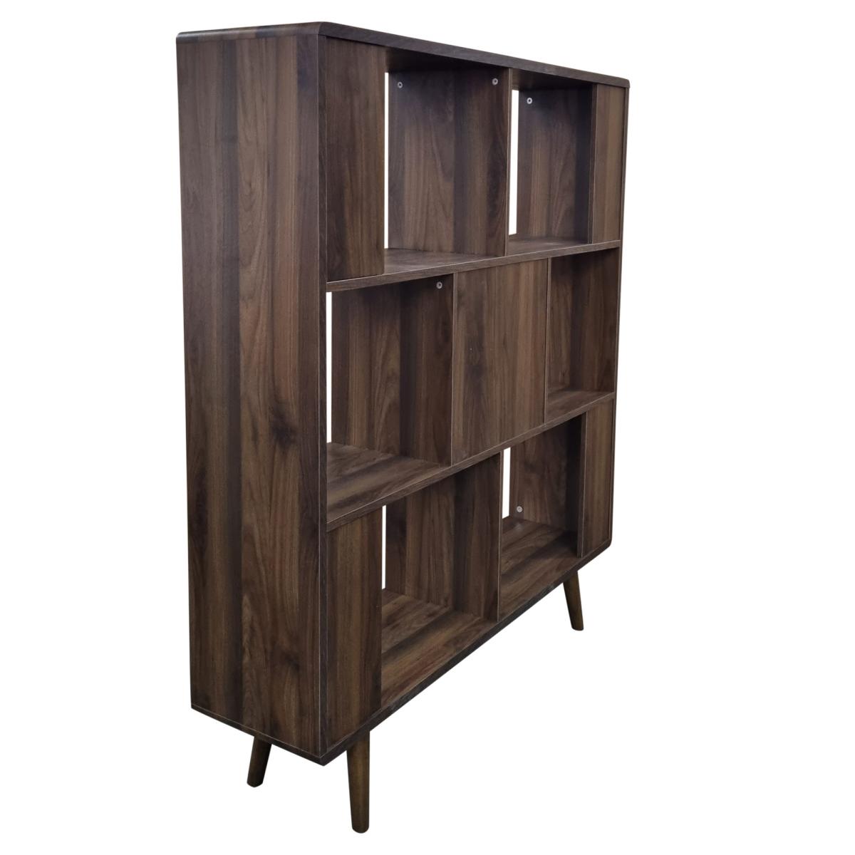 * Tall Wooden Bookcase* Slatted Doors* Large Shelves* Assembly Required Featuring sliding slatted doors that conceal an interior housing two shelves and seven cupboards, this bookcase encapsulates both functionality and elegance. Its thoughtful craftsmanship not only offers practicality but also adds a unique depth to the space, serving as a statement piece that resonates with the harmonious coalescence of Japanese and Scandinavian design sensibilities.
