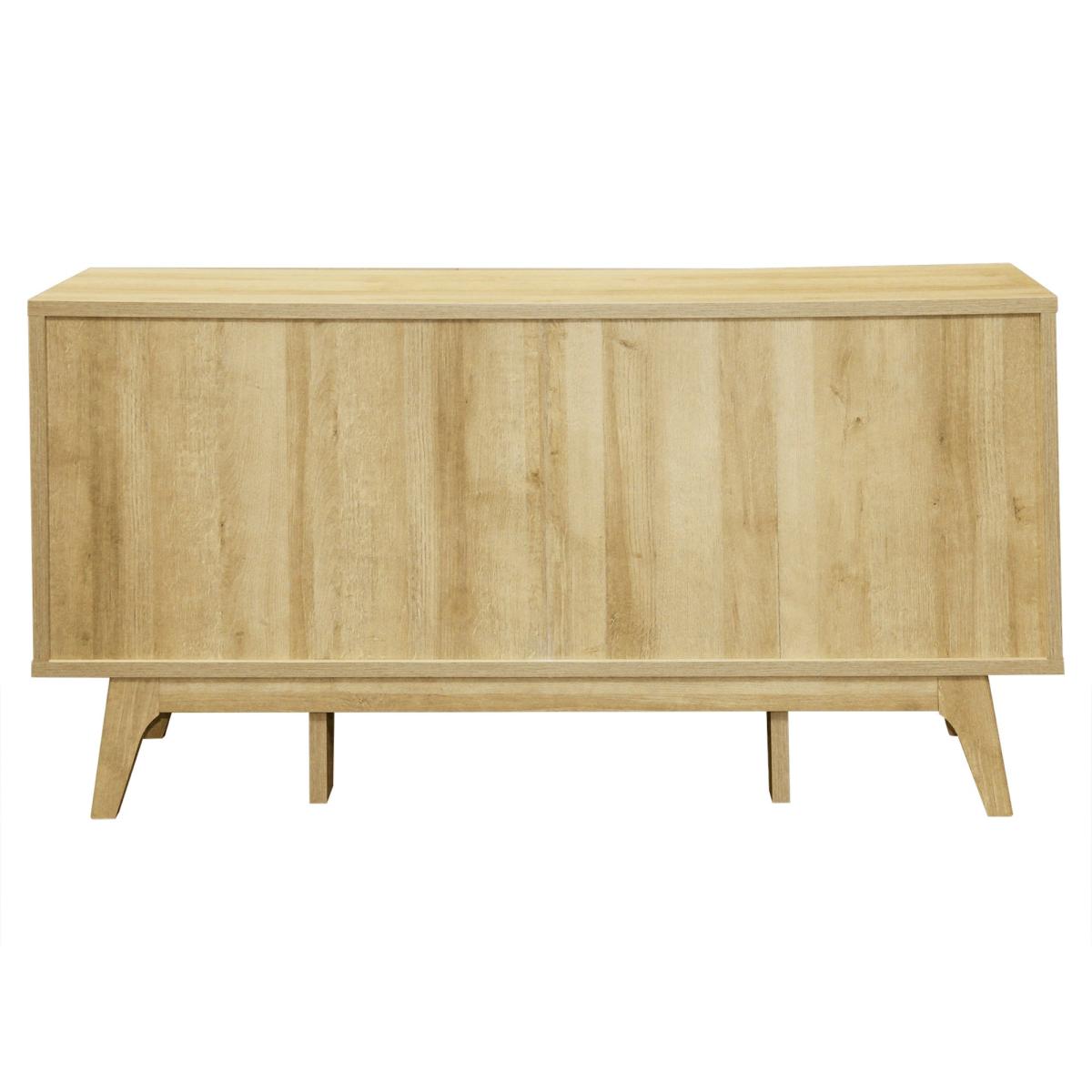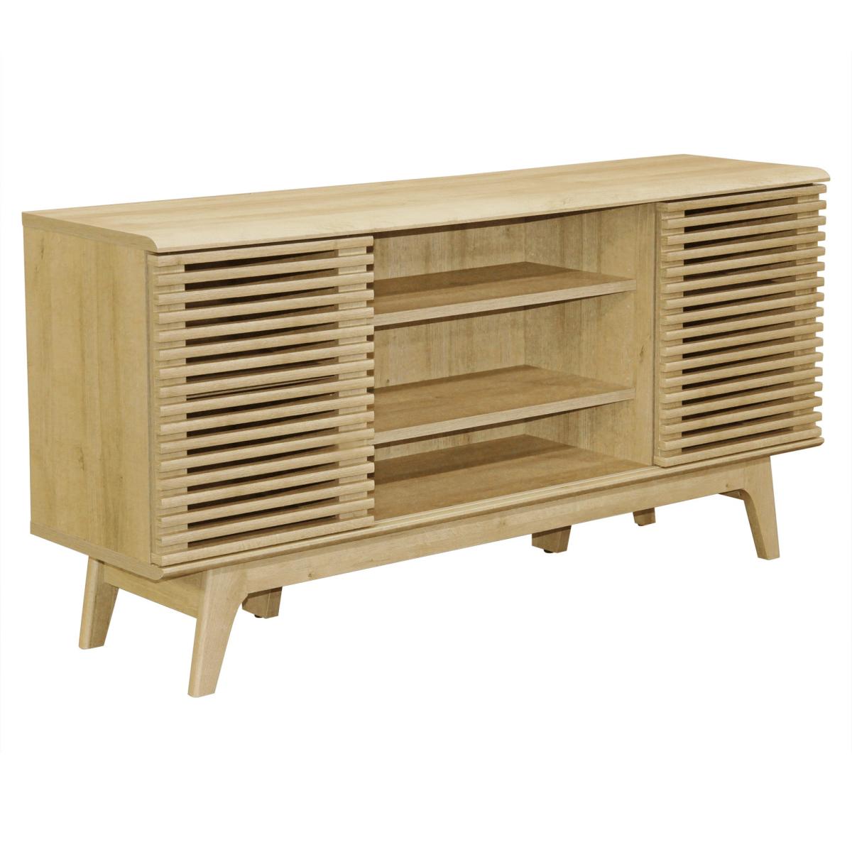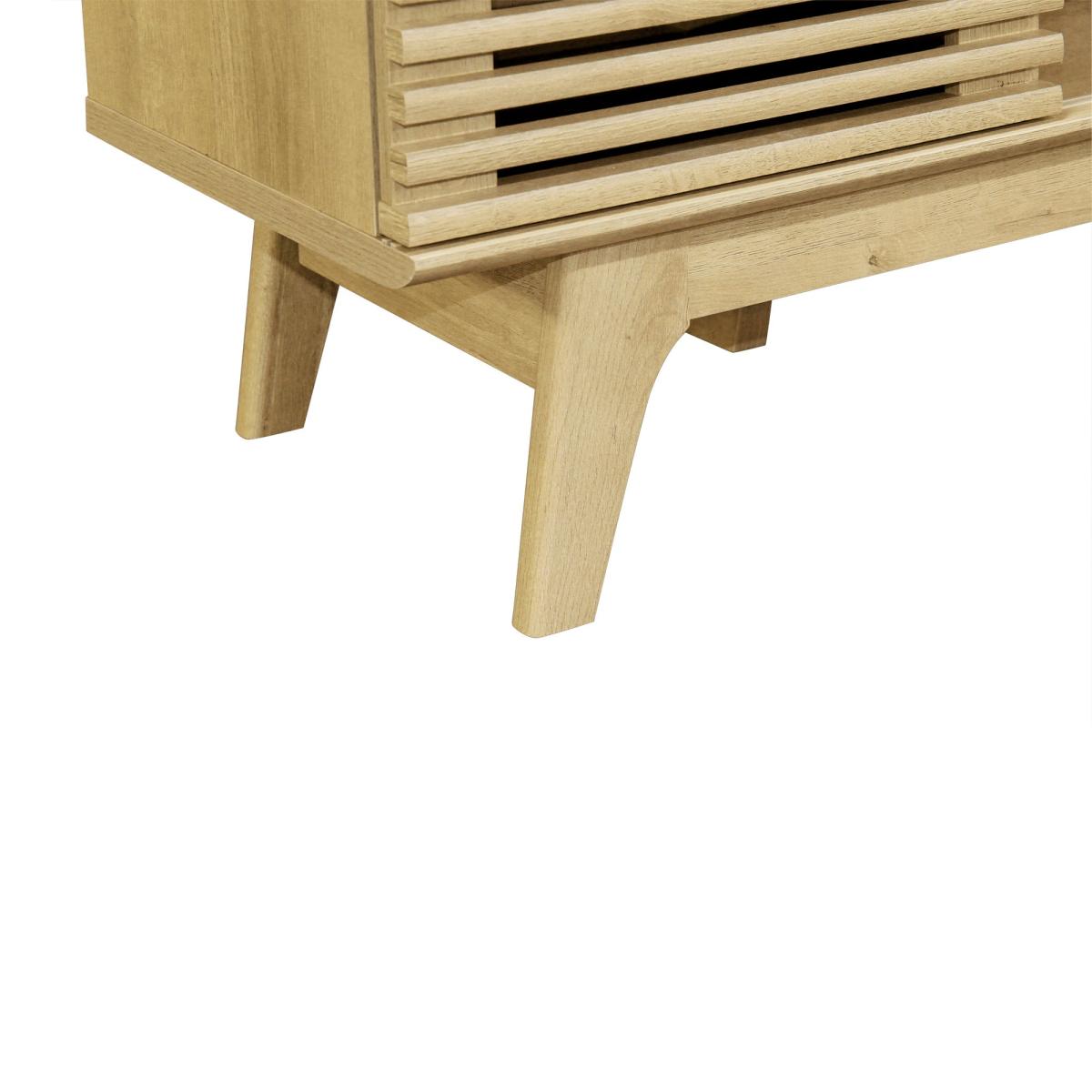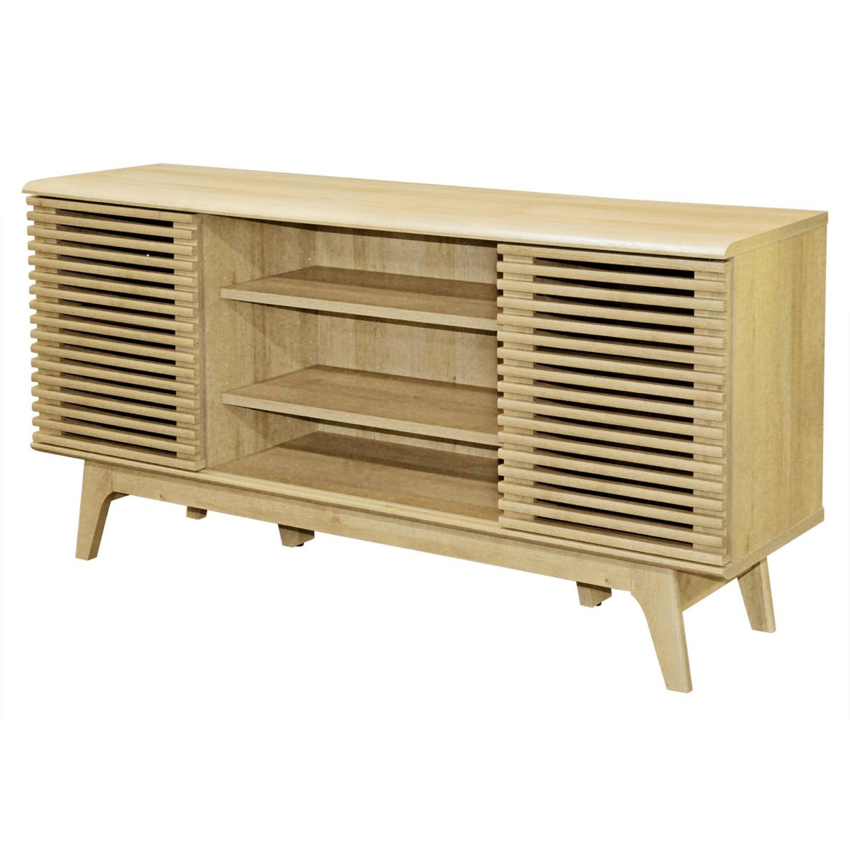 * Wooden Sideboard* Slatted Doors* Interior Cabinets and Shelf* Assembly Required This sideboards sliding slatted doors open to reveal an interior layout comprising shelves and cupboards, providing an organised storage solution while showcasing the depth and richness of the blend of Japanese and Scandinavian design.