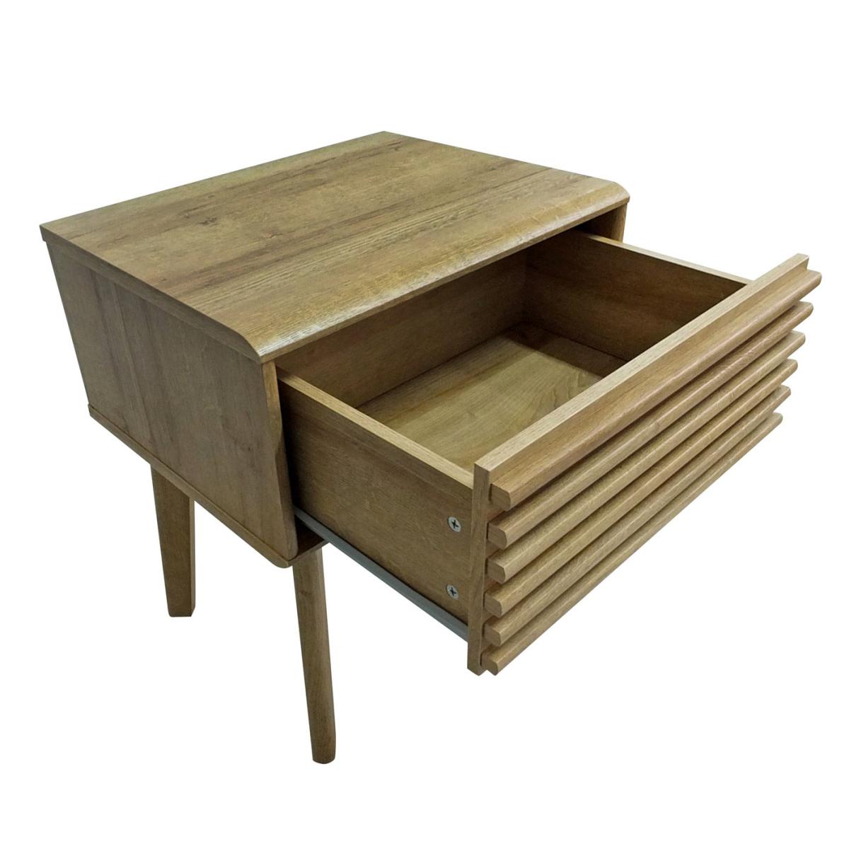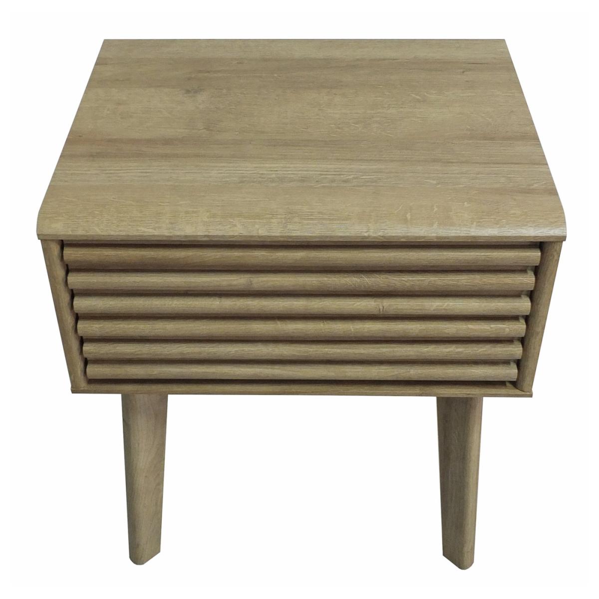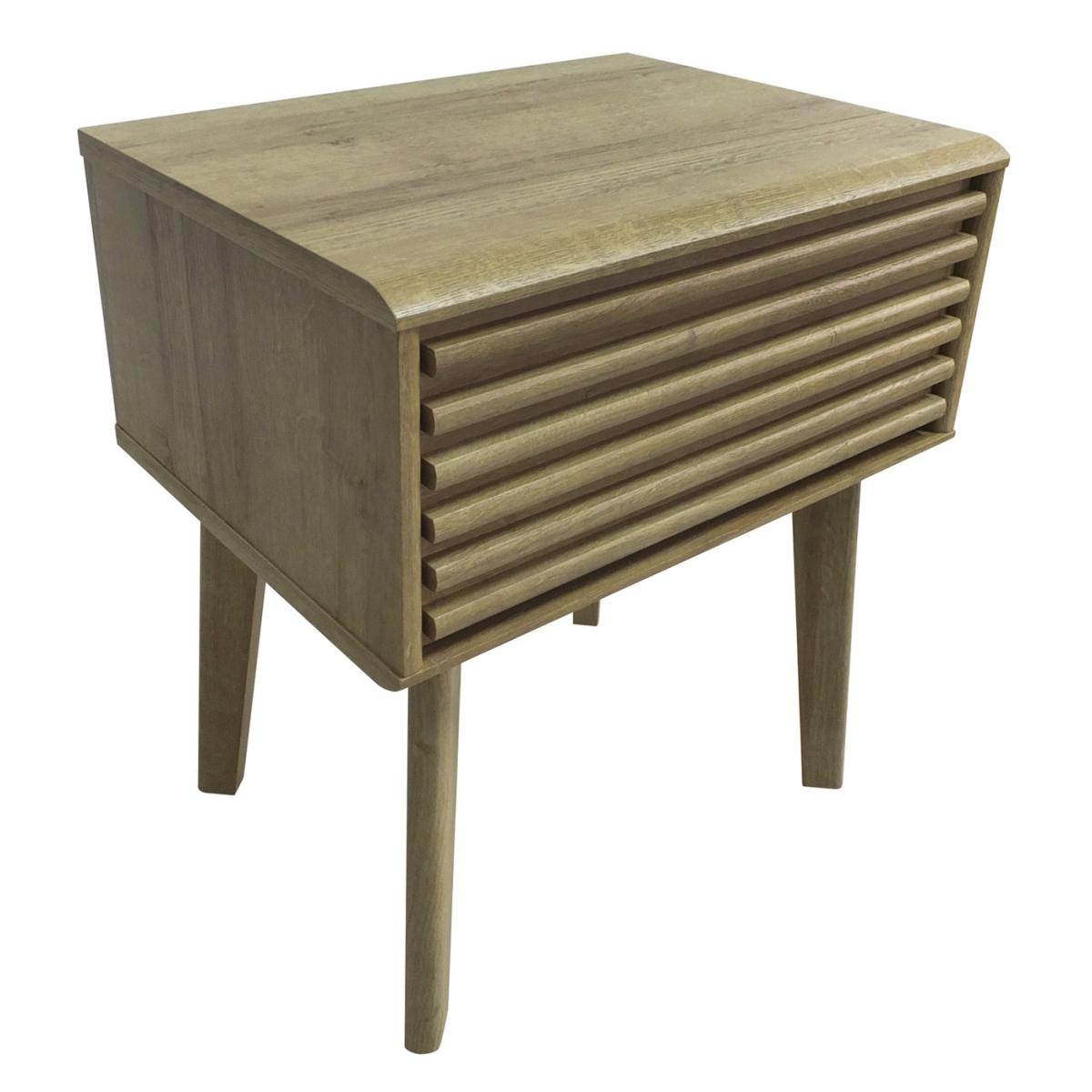 * Wooden Side Table* Drawer for Storage* Assembly Required This side table features sliding slatted drawers, offering a functional and stylish storage solution that embodies the essence of both cultural influences. This elegant piece, requiring some assembly, presents an oak effect finish that adds sophistication and warmth to any space. This side table is a statement of refined craftsmanship, portraying the graceful harmony between Japanese and Scandinavian design elements.