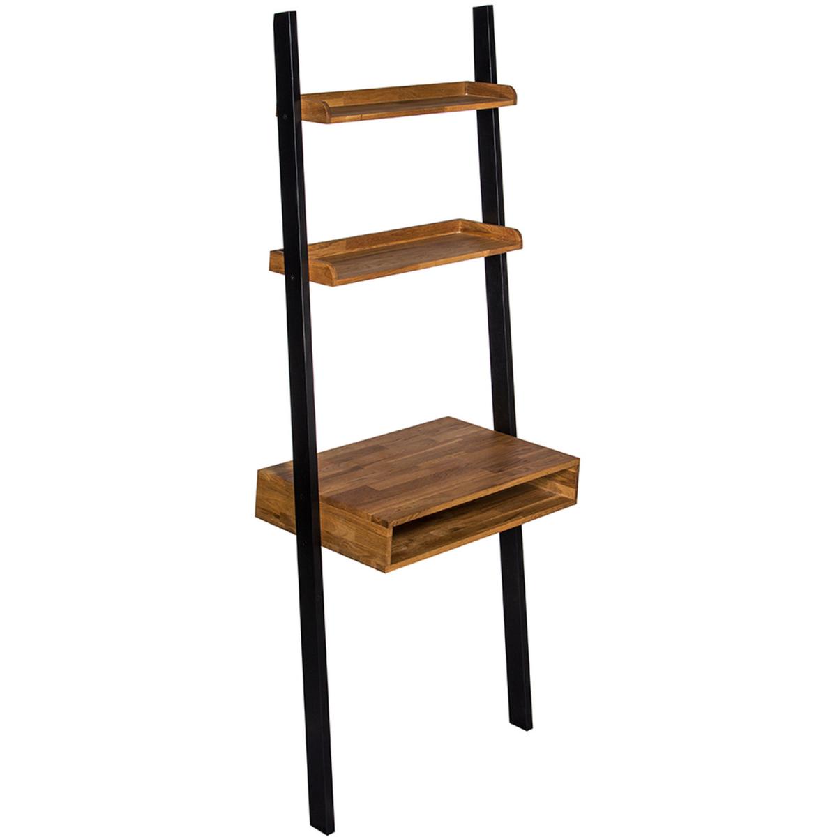 I’m a big fan of this ladder-style desk for compact or narrow zones - its slim, leaning frame makes it ideal against a hallway wall or in a cosy home-office corner. The mix of warm timber shelves and black metal legs suits both Scandi-inspired and industrial interiors, and it pairs neatly with a streamlined desk chair or simple rattan seat. Styling tips: keep the desktop clutter-free by using one of the upper shelves for books or storage boxes, and the top shelf for a small potted plant or task light. Position it against a pale wall and hang a minimal print just above the frame to tie the look together without crowding your workspace.