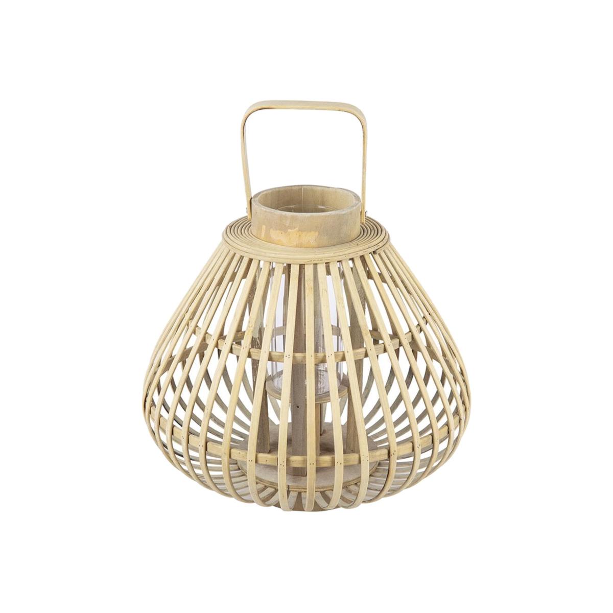 Create a warming glow in the home with this Sahara bamboo lantern from Broste Copenhagen. Made from natural bamboo, it features a beautifully curved design and is finished with a practical handle to hang it in your home. Perfect for filling with a flickering candle, it includes a glass candle holder inside and makes a wonderful gift idea for any occasion.