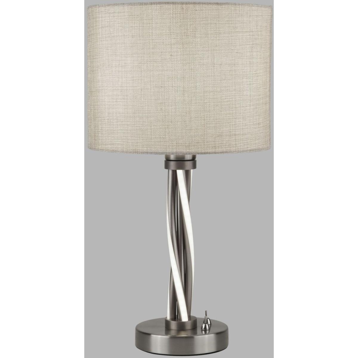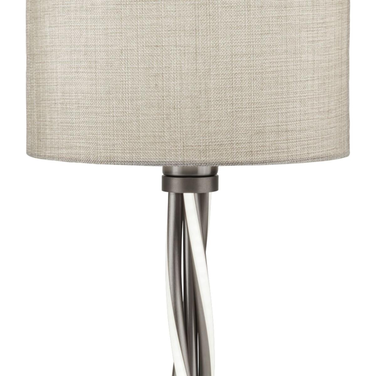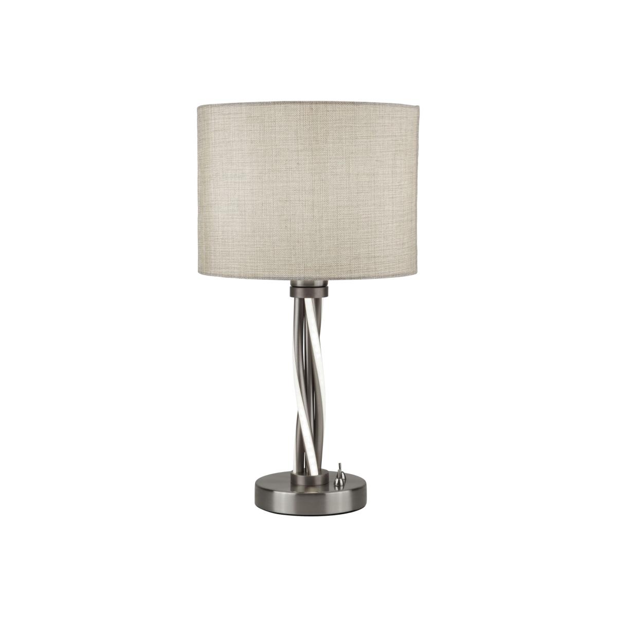 The modern design of this stylish table lamp is great for a contemporary home. The swirl chrome base has LED lights and is topped with a tasteful contrast cream hessian shade which creates a warm and subtle look in your home interior.