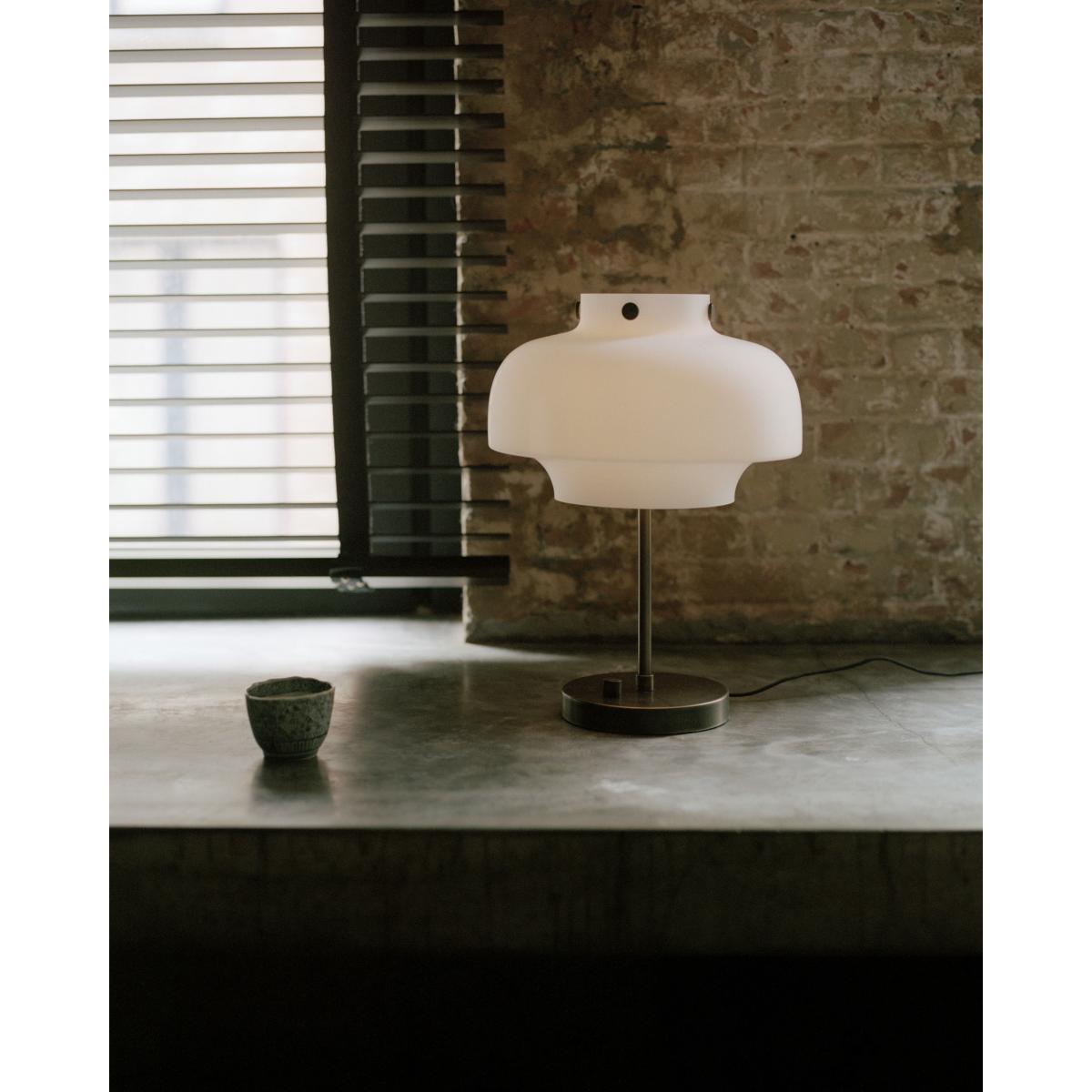 The aim of the Danish studio Space Copenhagen was to design a lamp with an industrial look that’s also elegant and poetic. The Copenhagen table lamp is inspired by old marine lanterns which decorated the boats of the 19th century. The opalescent glass lampshade reminds us of gaslights, those old street lamps that lit up the streets of Copenhagen. With its archetypal shape, this light forms part of our collective memory. The bronze-effect brass base and the finish of the colours are extremely elegant. The Copenhagen table lamp is also characterised by its adjustable light thanks to its dimmer. You can also choose between a white light for day time or a warmer light for your evenings.