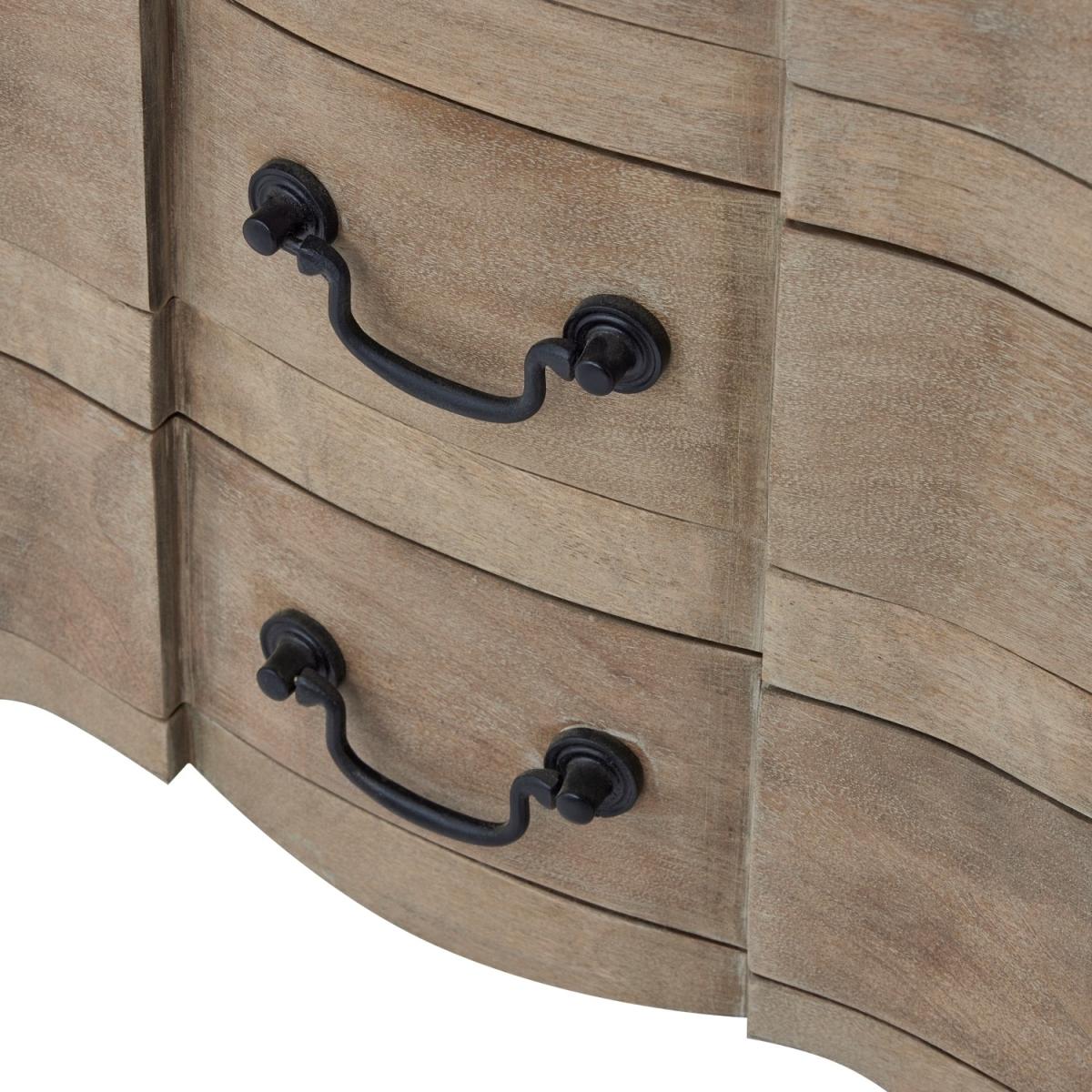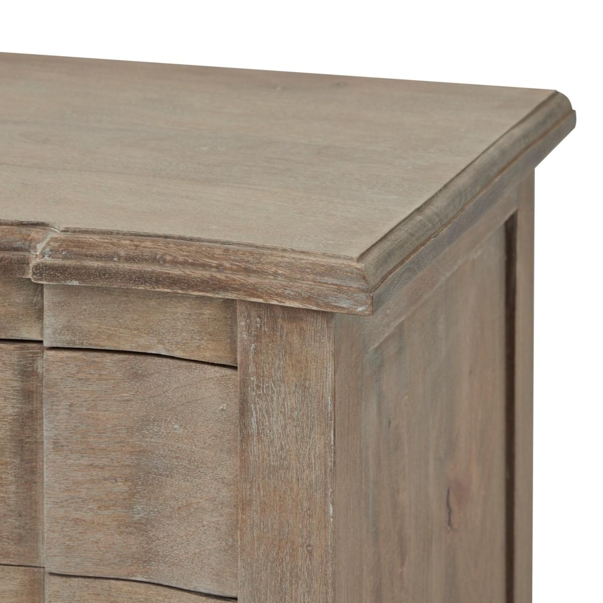 Features we love Classic bedside table in washed bleached wood finish Handcrafted hard wood creates a luxurious French look Classic and modern design create a seamless and welcoming vibe Three drawers provide ample storage space for essentials Perfect the look with other pieces from the collection All about me The Copgrove collection beautifully captures the essence of timeless design by blending classic French elegance with modern elements. Crafted with meticulous attention to detail, the handcrafted hardwood and washed, bleached wood finish exude sophistication. The 3 drawers bedside table not only offers ample storage but also serves as a versatile statement piece. This collection exemplifies the art of combining traditional and contemporary aesthetics, resulting in furniture that harmoniously complements various home designs while retaining an air of refinement. Need to know Dimensions:W55 x D45 x H60 cm Packed dimensions:Box 1- W80 x D50 x H80 cm Weight: 20 kg Number of drawers: 3 Colour: Brown Material: Solid Wood Finish: Wood, bleached wood finish Assembly required: No