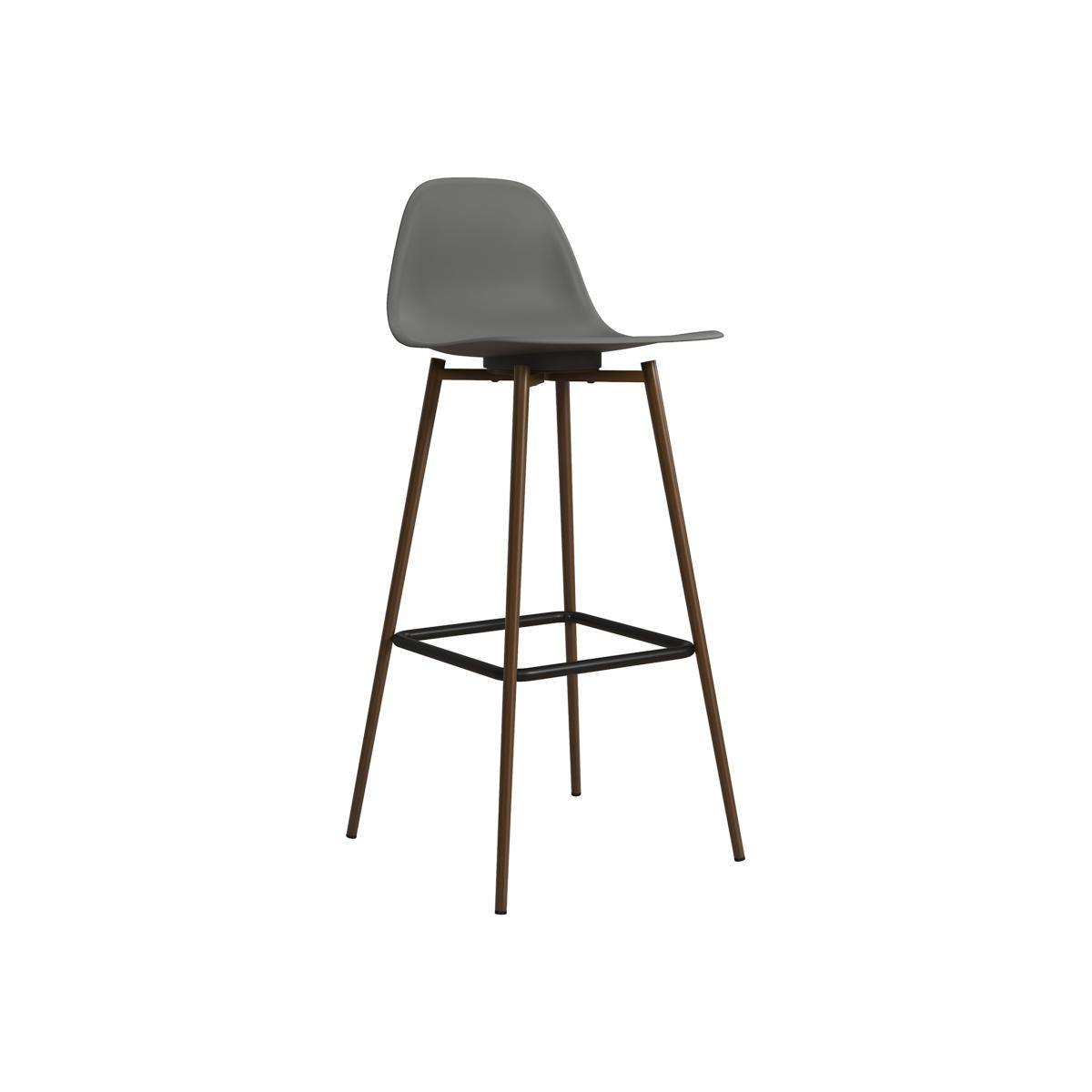 Give a touch of elegance to your home bar with the Copley Plastic Bar Stool! Designed in clean simple lines that allude to the Mid Century dcor, this stool is perfect for any style. This molded stool has sturdy metal legs with a wood-look finish, assembles in seconds and it is lightweight and durable. The Copley Plastic Bar Stool is available in in Black, White and Grey. Sold individually.