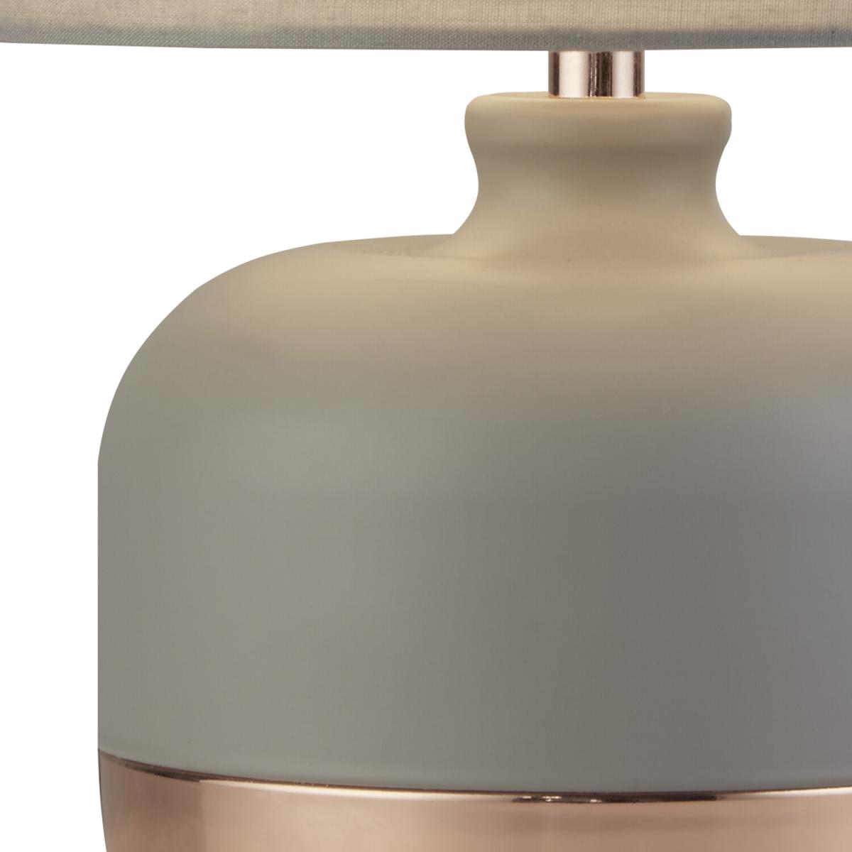 Available in grey or pink, the Copper Accent Table Lamp features a vintage copper base that creates a soft and elegant aesthetic. With a matching fabric shade, this stylish table lamp will be perfect for a living room or bedroom.