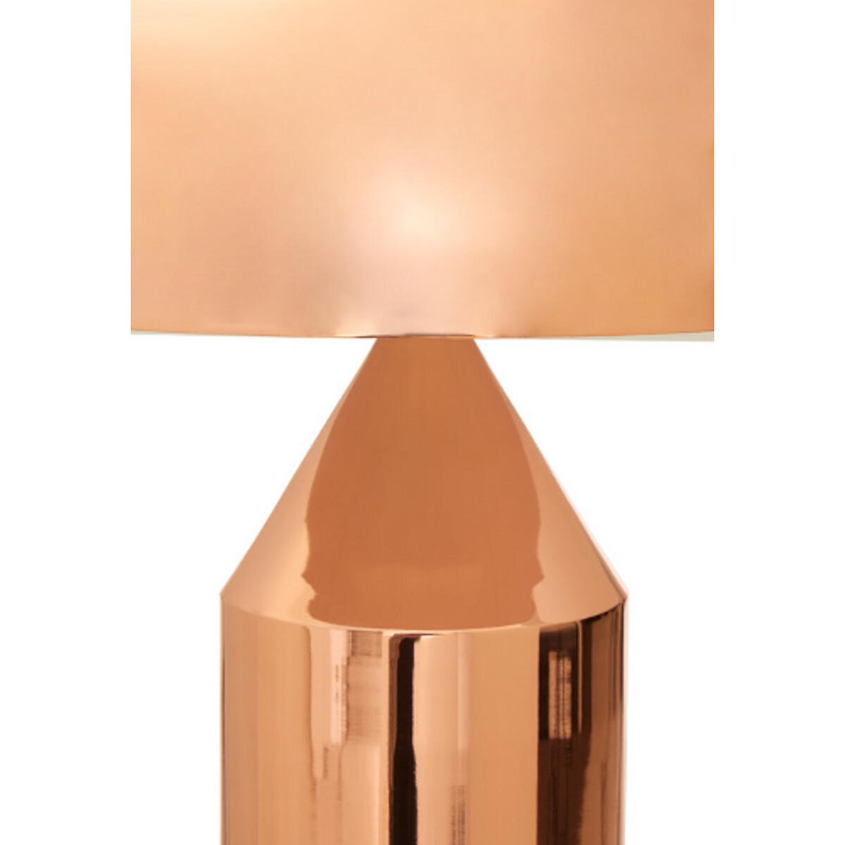 I love this table lamp for its sleek, contemporary design and the striking copper finish that adds warmth and a modern edge to any space. It works particularly well in minimalist or industrial interiors, where its abstract shape can serve as a standout feature. Practical styling tips include pairing it with neutral tones for a clean look or combining it with textured accessories like velvet cushions or woven rugs for added depth. It’s versatile enough to sit on a bedside table, a sideboard, or a desk, and its warm glow can create inviting atmospheres in both living rooms and bedrooms. Just remember to keep other metal finishes minimal to let this statement piece shine.