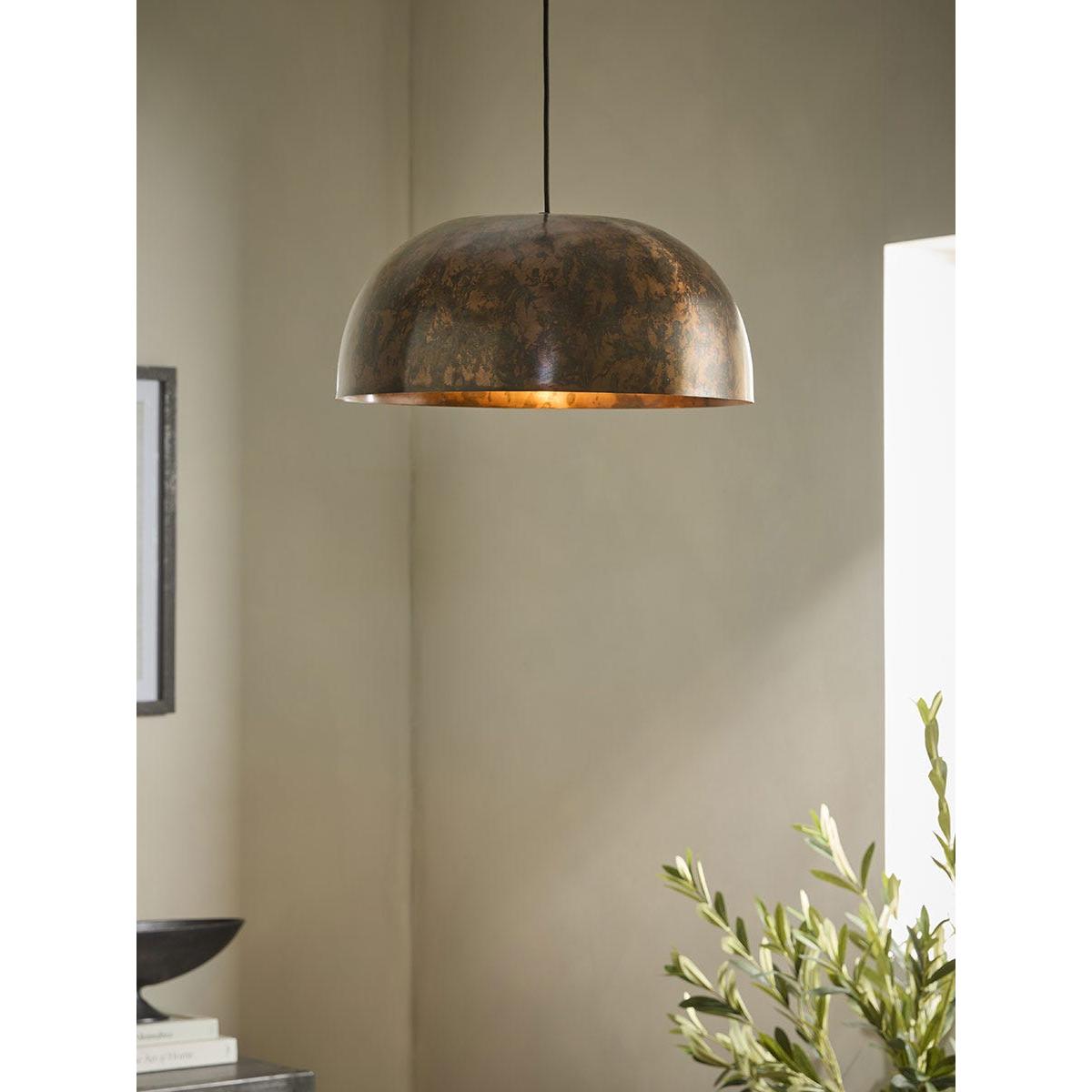 I love this copper effect dome light for its versatile, contemporary charm with a vintage twist. It works particularly well in industrial, modern, or eclectic interiors, adding warmth and texture to a space. When styling, consider hanging it over dining tables, kitchen islands, or even in a minimalist living room to create a bold focal point. Practical tips include pairing it with warm-toned bulbs to enhance the copper finish and varying the heights if installing multiple in a row for an impactful, layered look. It's a fantastic choice for adding character while maintaining a sleek, stylish vibe.