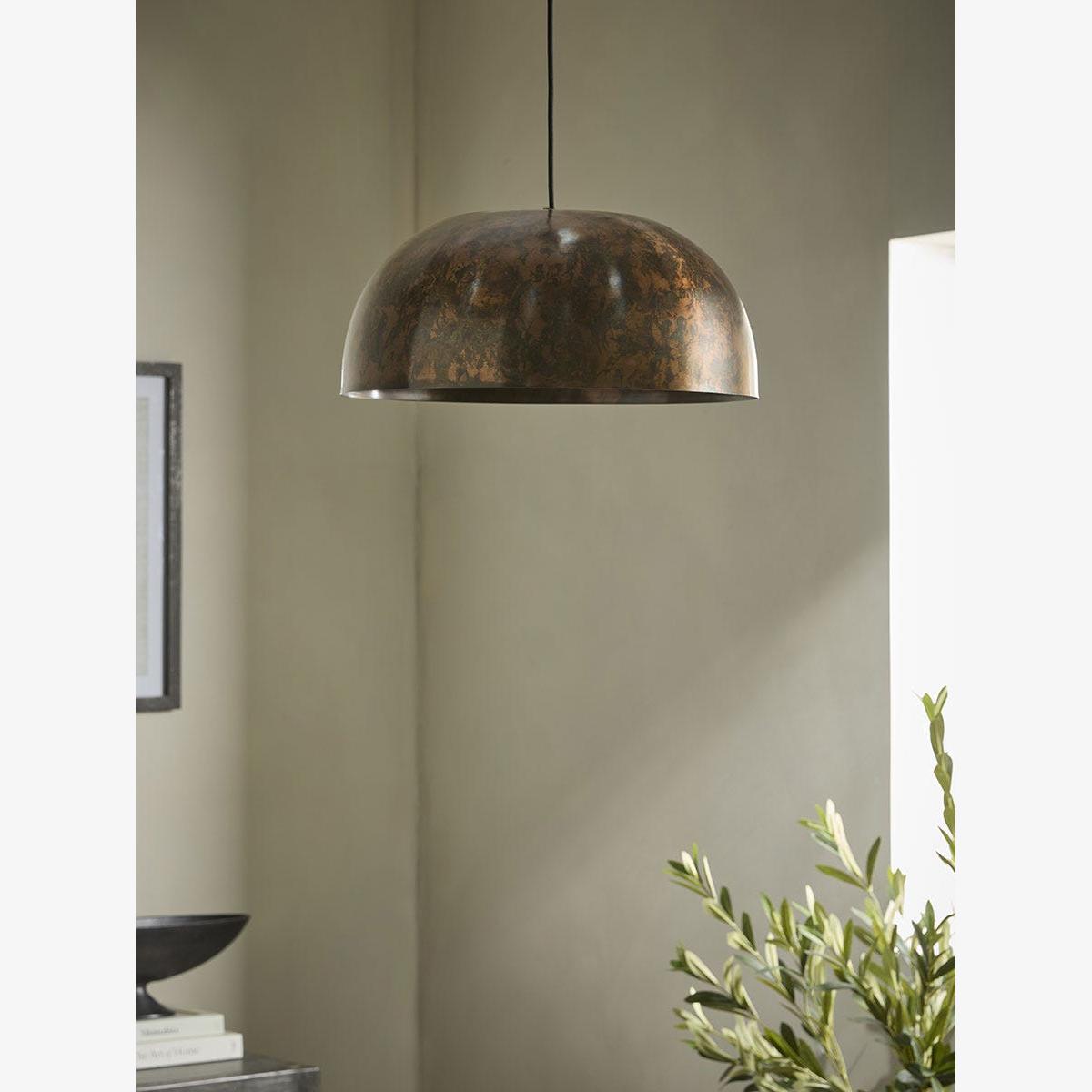 The striking copper-effect finish on the bowl shaped shade of this ceiling pendant will bring an impressive glow to any room.  Perfect for creating a little drama above a kitchen island or dining table, the timeless appeal of copper is hard to resist. Discover how to create the perfect lighting scheme for your home using our Lighting Buying Guide.
