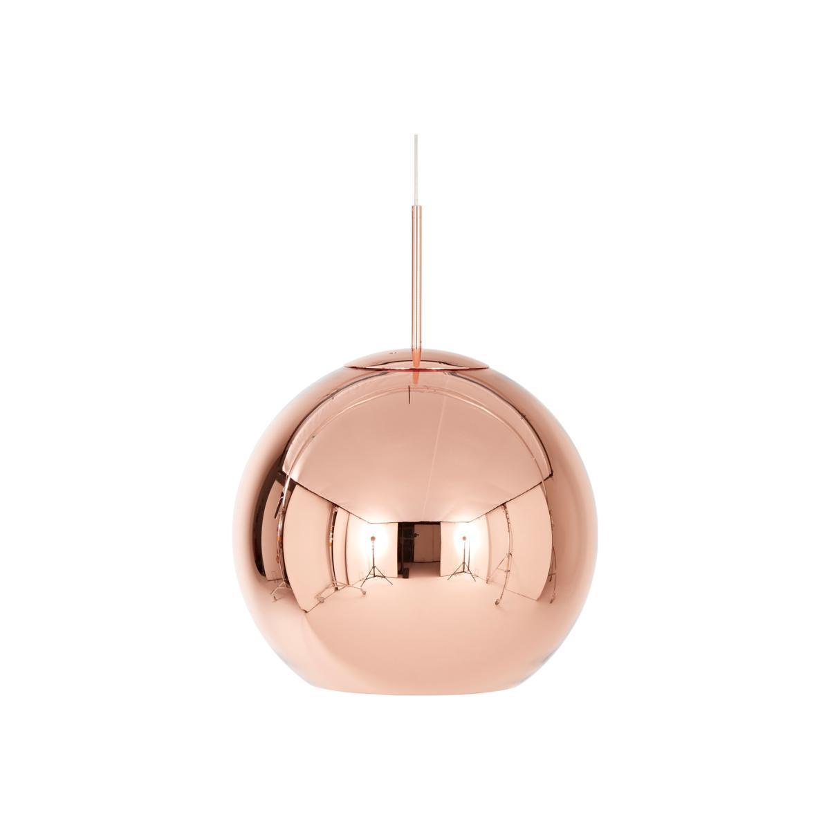 Illuminate your space with one of Tom Dixon’s striking lighting designs, the large Copper Pendant Light, designed to showcase a unique double-hued effect. Crafted from polycarbonate, the shade’s structure is vacuum metallised with a pure copper interior and cool brass exterior for a multi-hued finish. Founded in 2002 by Tom Dixon, the eponymous brand specialises in the revival of the British furniture industry, working with beautiful raw materials and streamline silhouettes to create contemporary pieces. Perfect for casting ambient illumination over any space, the iconic large bronze Copper Pendant by Tom Dixon reflects light off its polished interior to create a warm glow. Requires: 1 xE1. 4 bulb (not included).