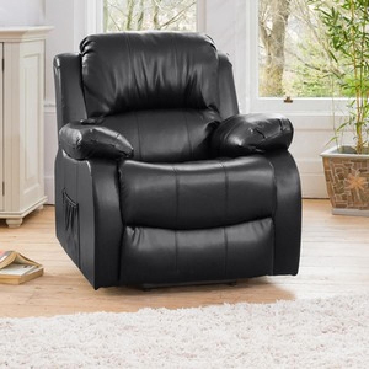 The Copthorne Reclining Suite is a large, well-padded and extremely comfortable family suite. This chair is electrically operated and both recliner and rises up to assist mobility in getting out of the chair. The recline function is operated by an easy to use remote control and is completely variable, stop the chair in your preferred position. The chair also boasts an integrated massage and heat function for ultimate relaxation. This model is also available as a 3 seat, 2 seats or 1 sear manually operated recliner model. The suite is constructed from solid hardwood and covered in durable and easy to maintain bonded leather. There is a faux leather match used on the low-stress areas which include, but aren't limited to, the back and sides of the suite. The seat interiors are pocket sprung and foam filled which gives the perfect balance between comfort and support.
