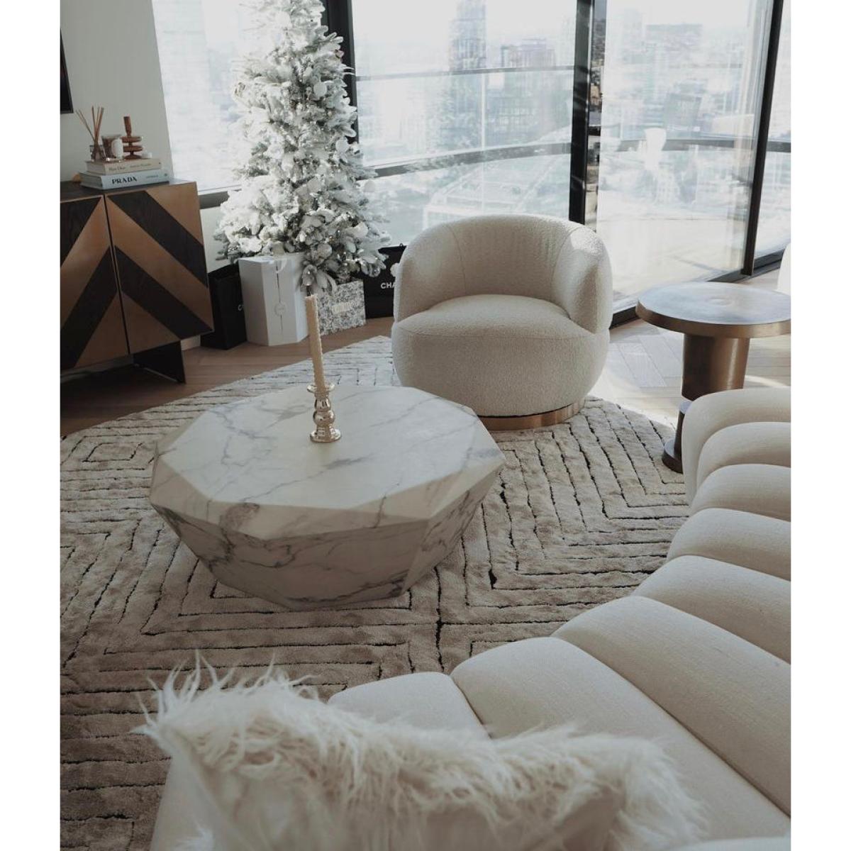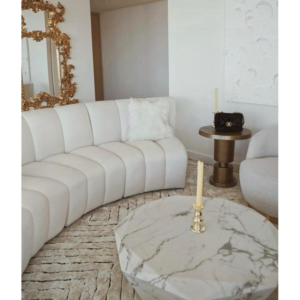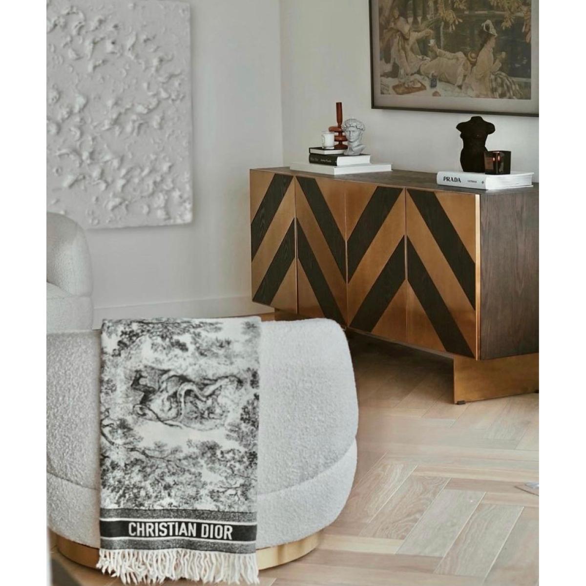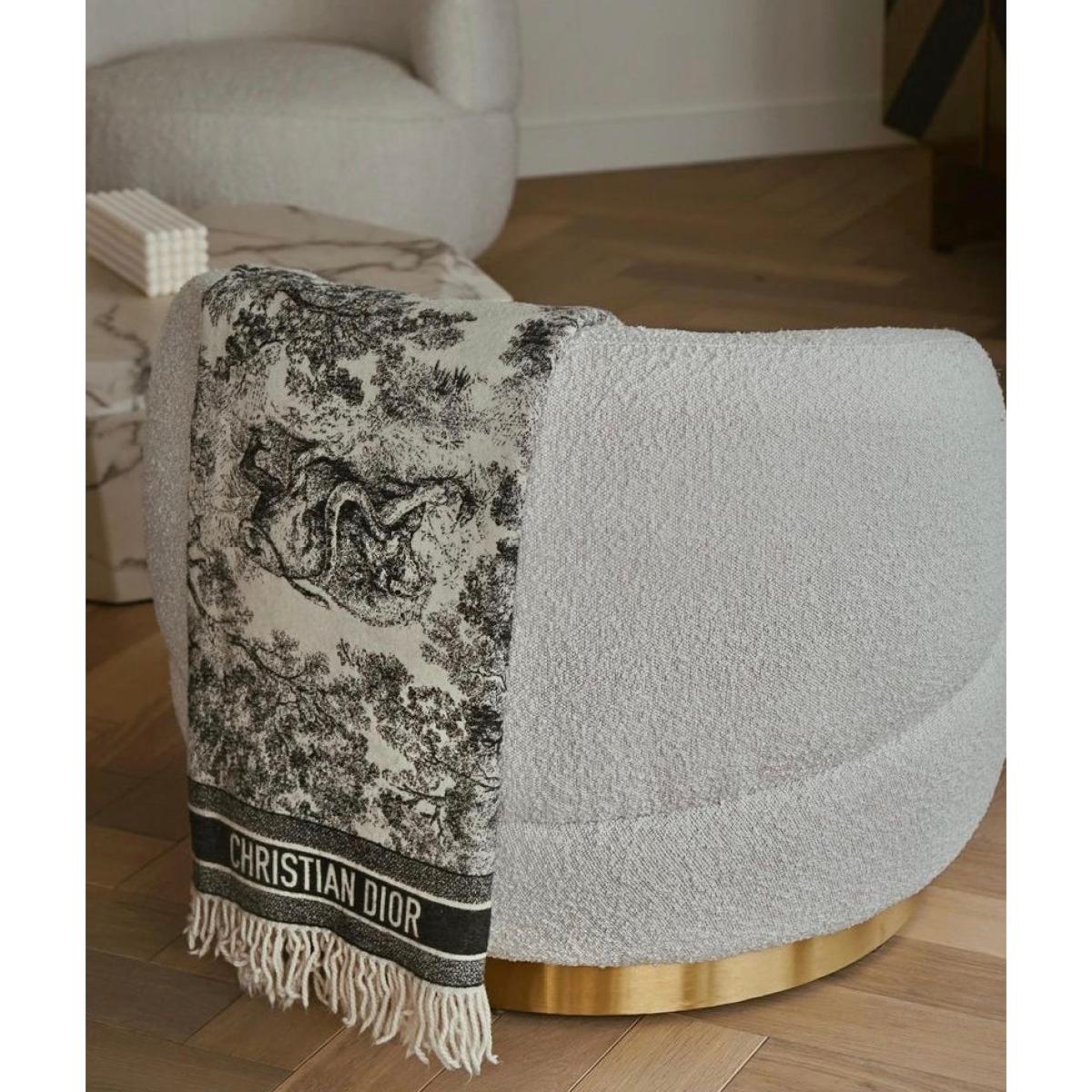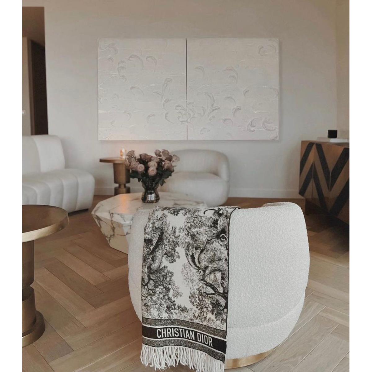 In a neutral sand colour, this rounded occasional chair is a perfect complement to any space in your home. Its sleek and attractive design creates a beautiful focal point, without appearing intrusive and the soft, wraparound backrest is ideal for settling comfortably into. Created by luxury designer Liang & Eimil, this boucle chair is sophisticated and, measuring in at 84cm wide and 88cm deep, combined with its 360 degree swivel base, is designed to fit into the cosiest of spaces. However, with its bold, brushed brass base, it is a striking statement piece, suitable for any size or style of room. Dimensions: W:84 x D:88 x H:70.5 cm