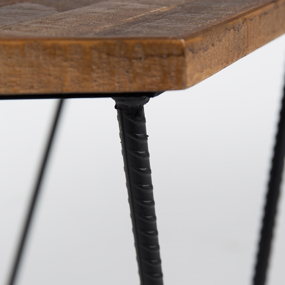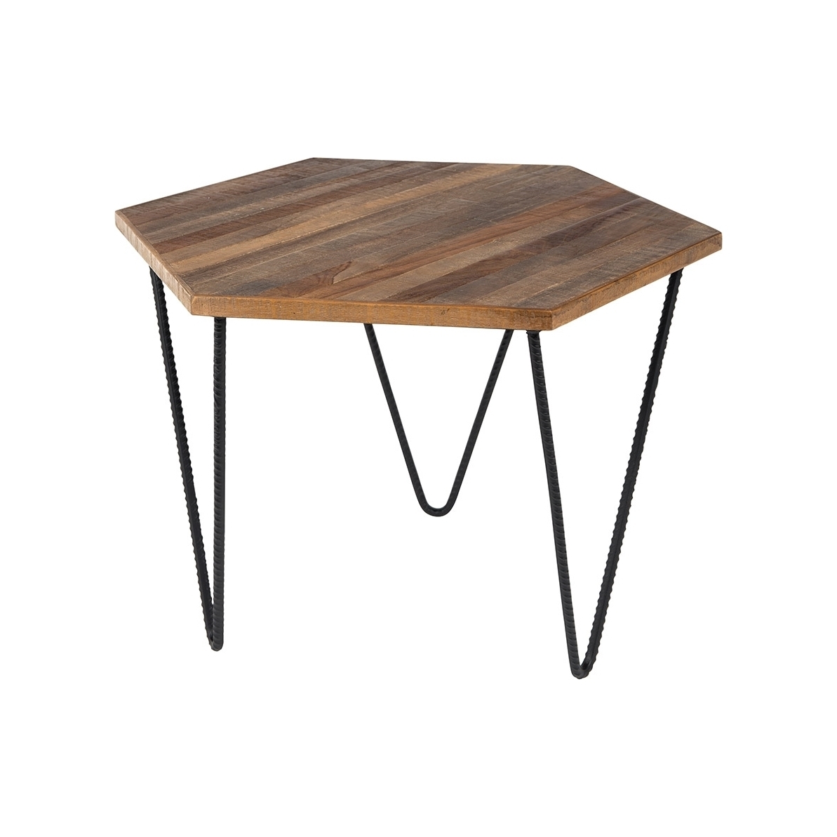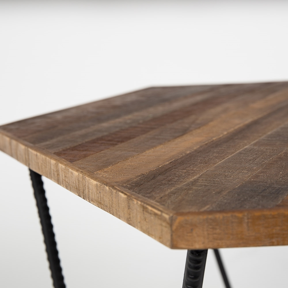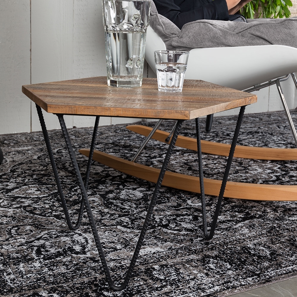 What better place to pop your cuppa than the Cor Recycled Teak Side Table, the perfect addition to any living room. Ideal next to the sofa or that favourite chair to hold mugs, books or that little reading lamp, you could even use it as a bedside table ifyou fancy. The hexagonal table top made from recycled teak pieces adds a stunning rustic element whilst the black, textured hairpin legs give this table an industrial finish that is sure look gorgeous wherever it is placed!