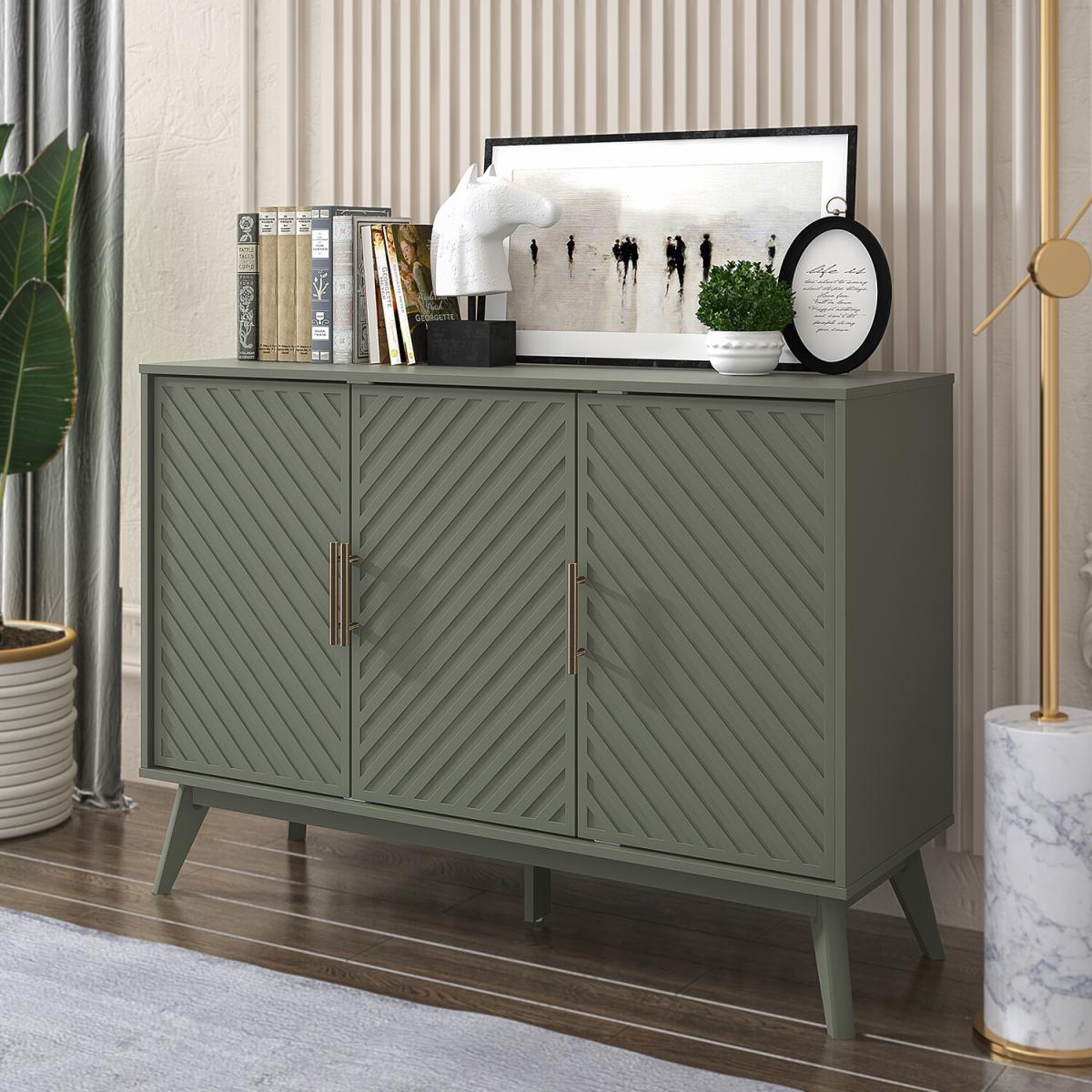 I really like this green sideboard for the way its subtle herringbone-style doors and slim, tapered legs bring a mid-century edge without feeling too fussy. The muted olive tone slots effortlessly into Scandi, contemporary and even boho schemes, pairing well with natural timber, muted ceramics and warm metals like aged brass or copper. Styling-wise, keep the top surface clear of clutter: a small selection of books, a simple lamp and a sculptural vase with fresh foliage will draw the eye without overwhelming. Inside, use baskets or matching storage boxes to corral everyday items - that way you maintain the clean lines that make the unit so versatile.