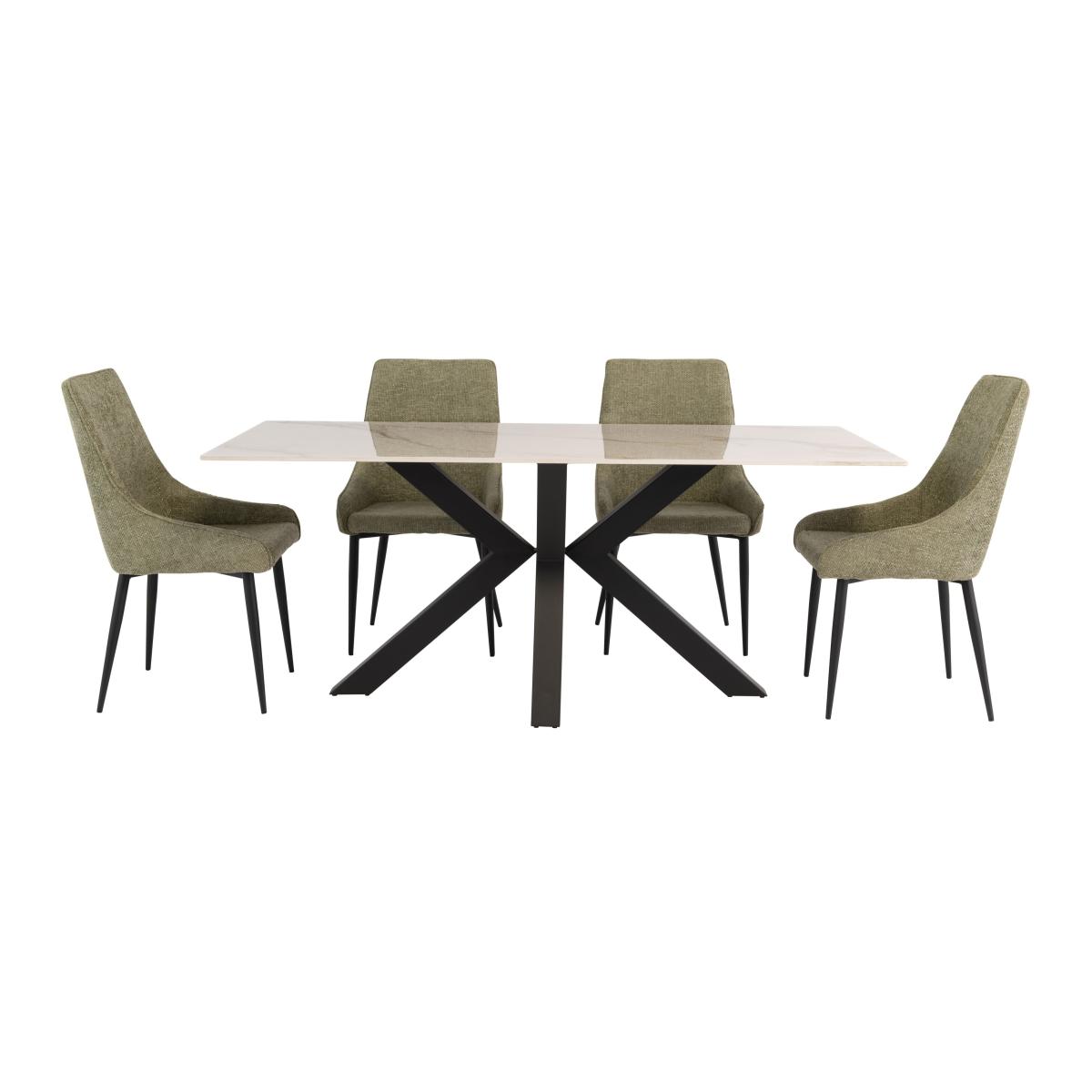 With its sleek, modern design, this dining table is the perfect touch for your home. With a durable sintered stone top and black metal base, it will stand out anywhere while still blending in seamlessly.